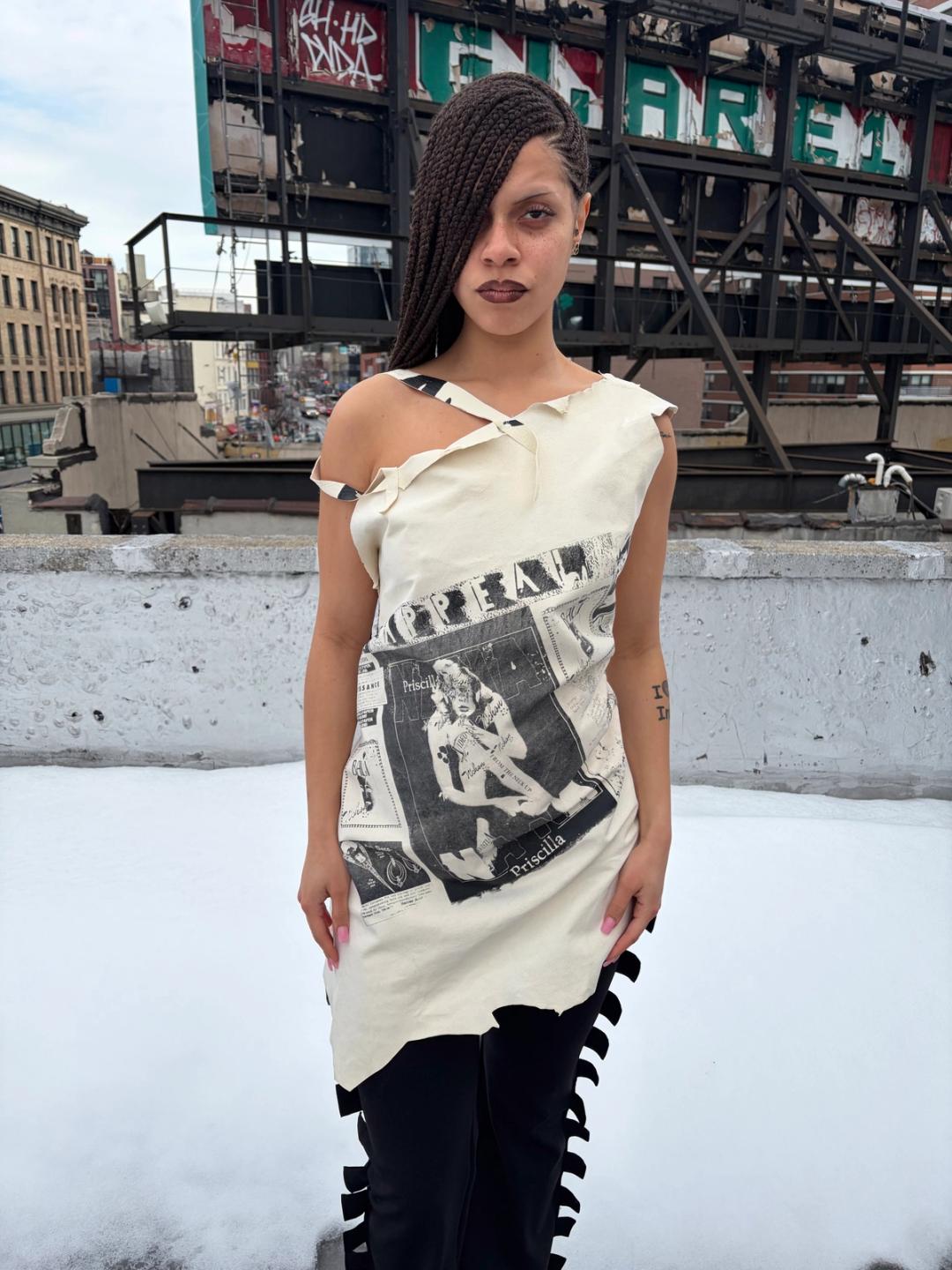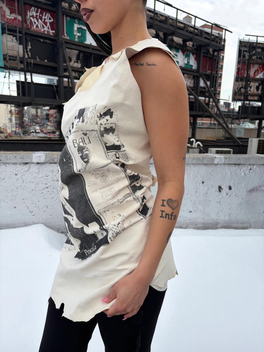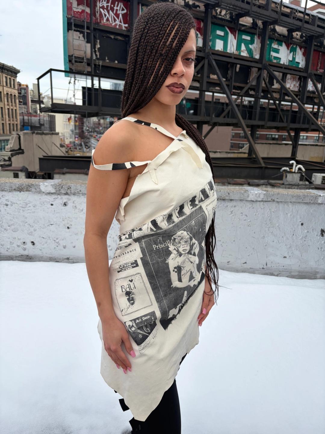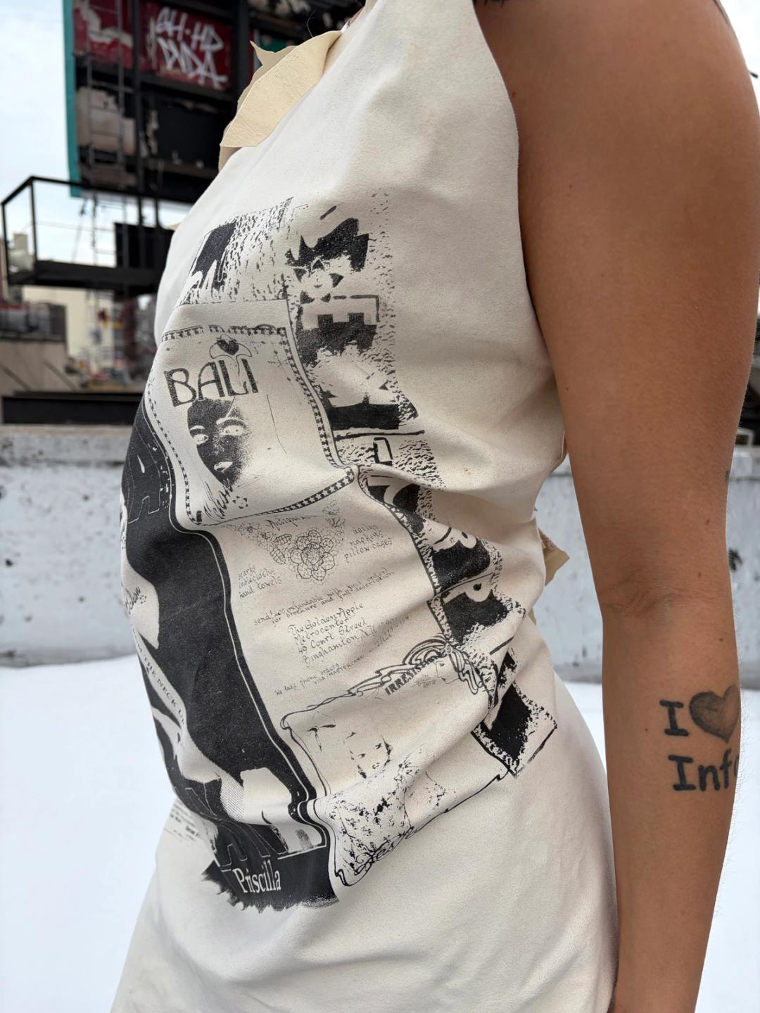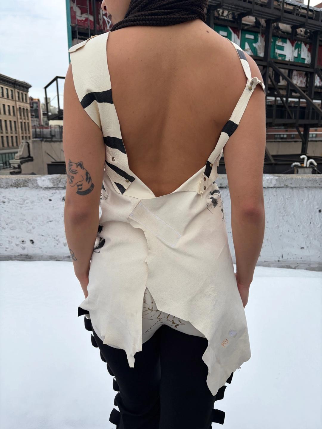 NANA collage screen-printed suede tunic made from remnants from our studio. Made in New York City.