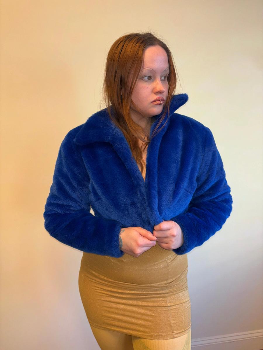 Vintage Norma Kamali Electric Blue Faux Fur Coat