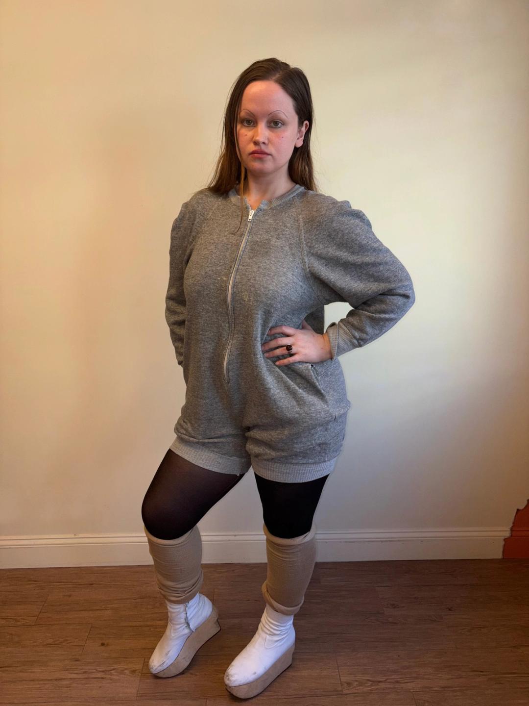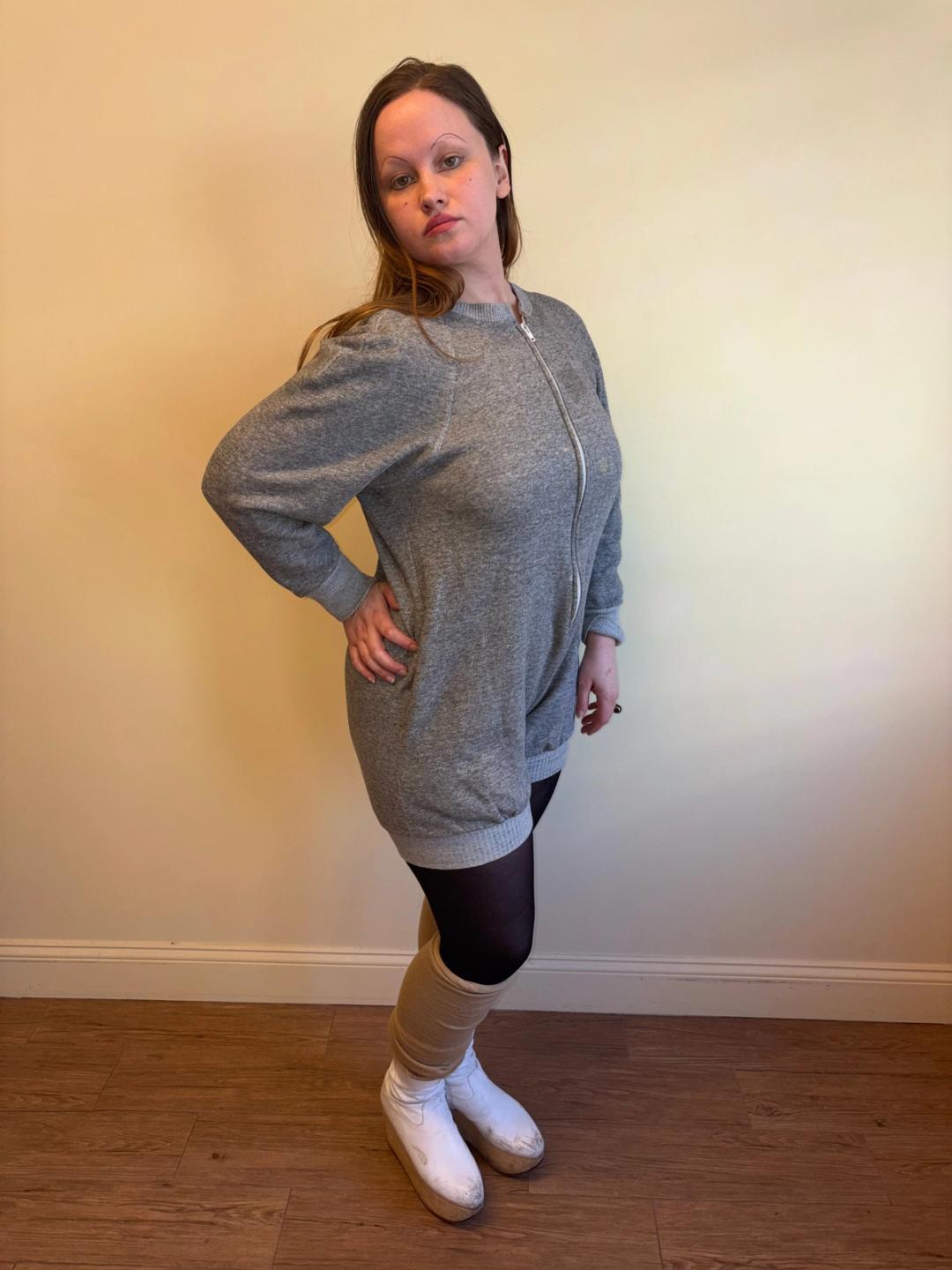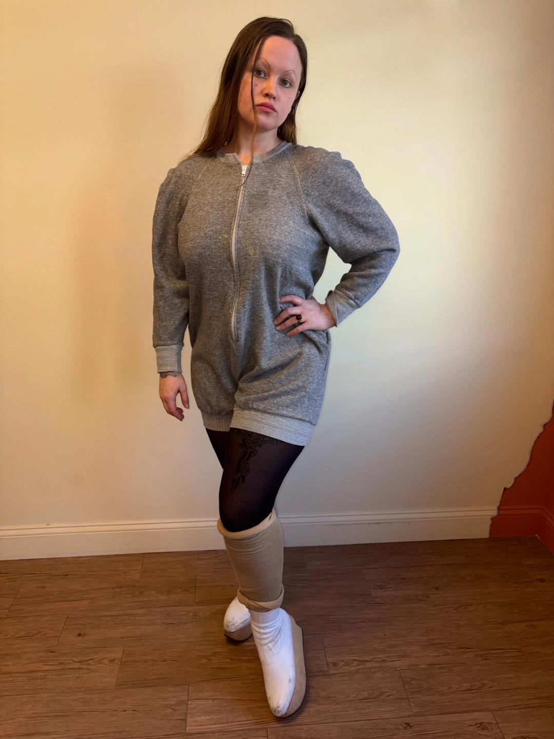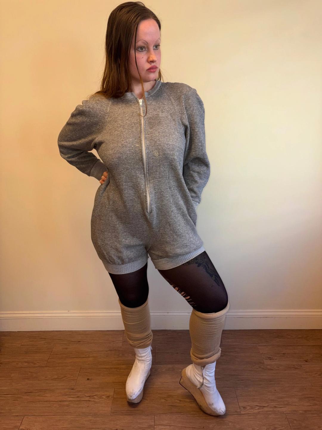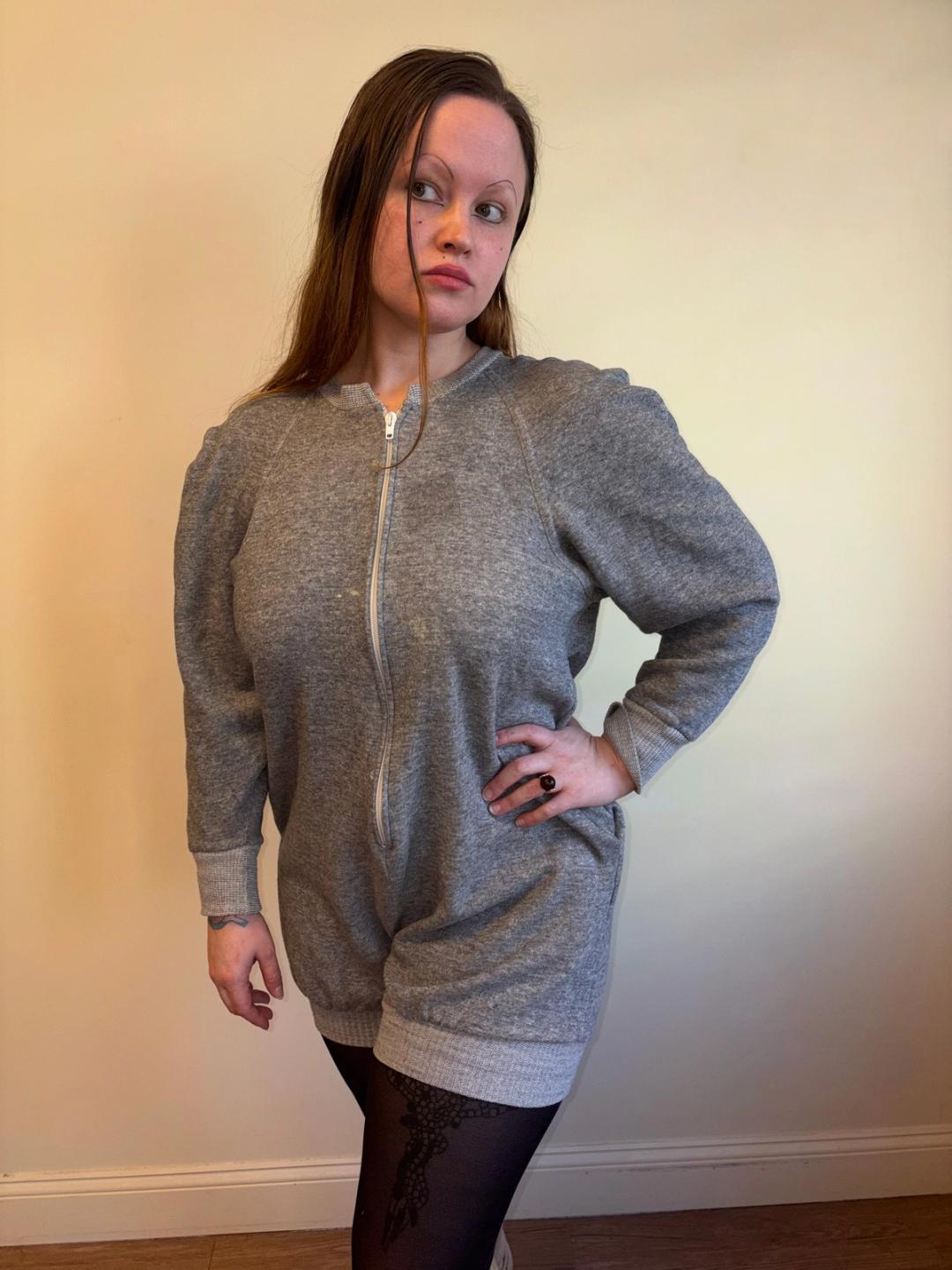1980 Norma Kamali Gray Zip Up Jumpsuit