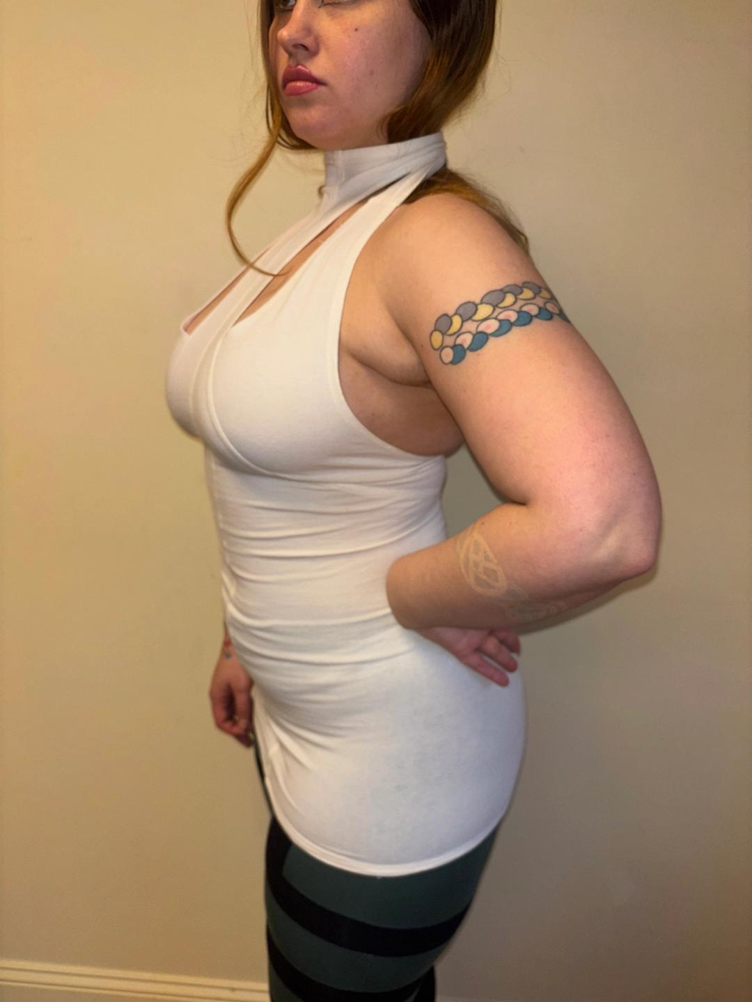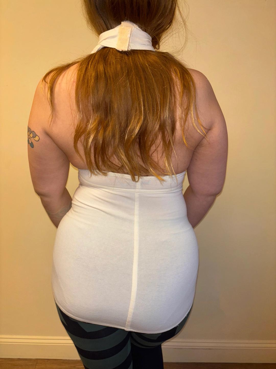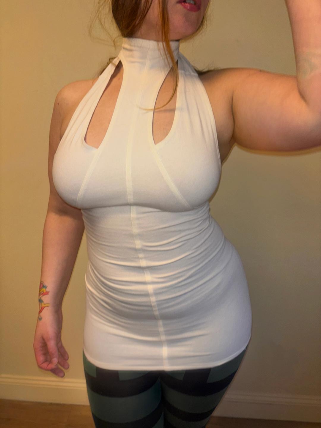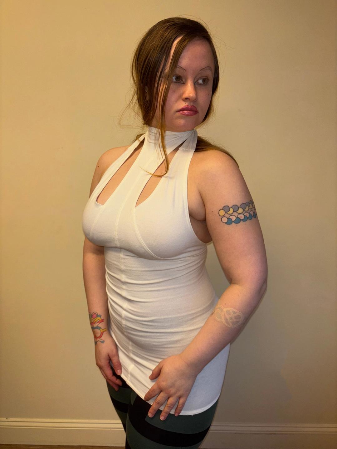 Stunning 1980s cutout top by Dorothee Bis, a French label known for directional and beautiful knitwear. Made from a cream-colored cotton spandex with unique velcro closure. In excellent vintage condition.