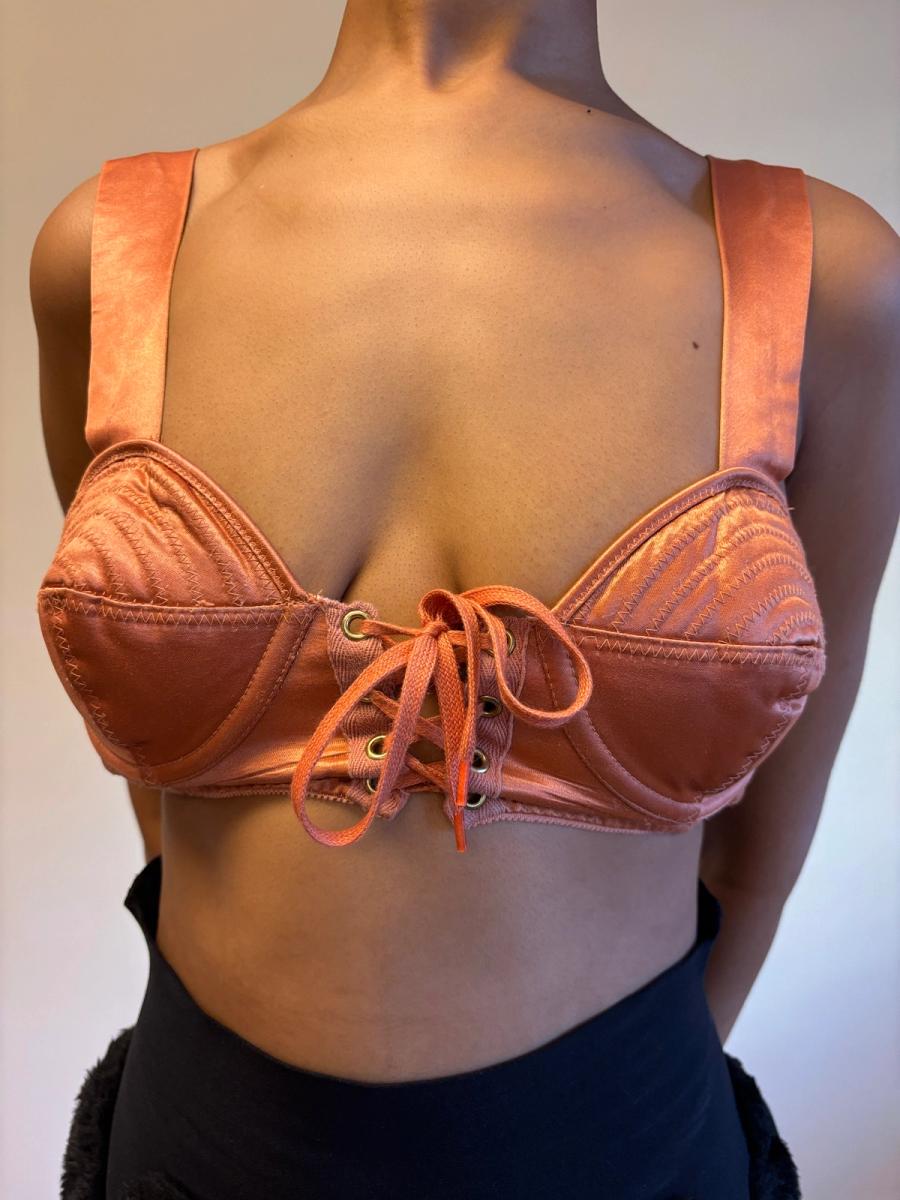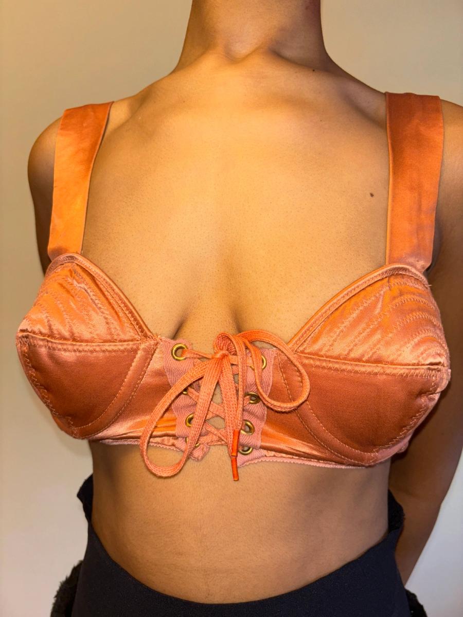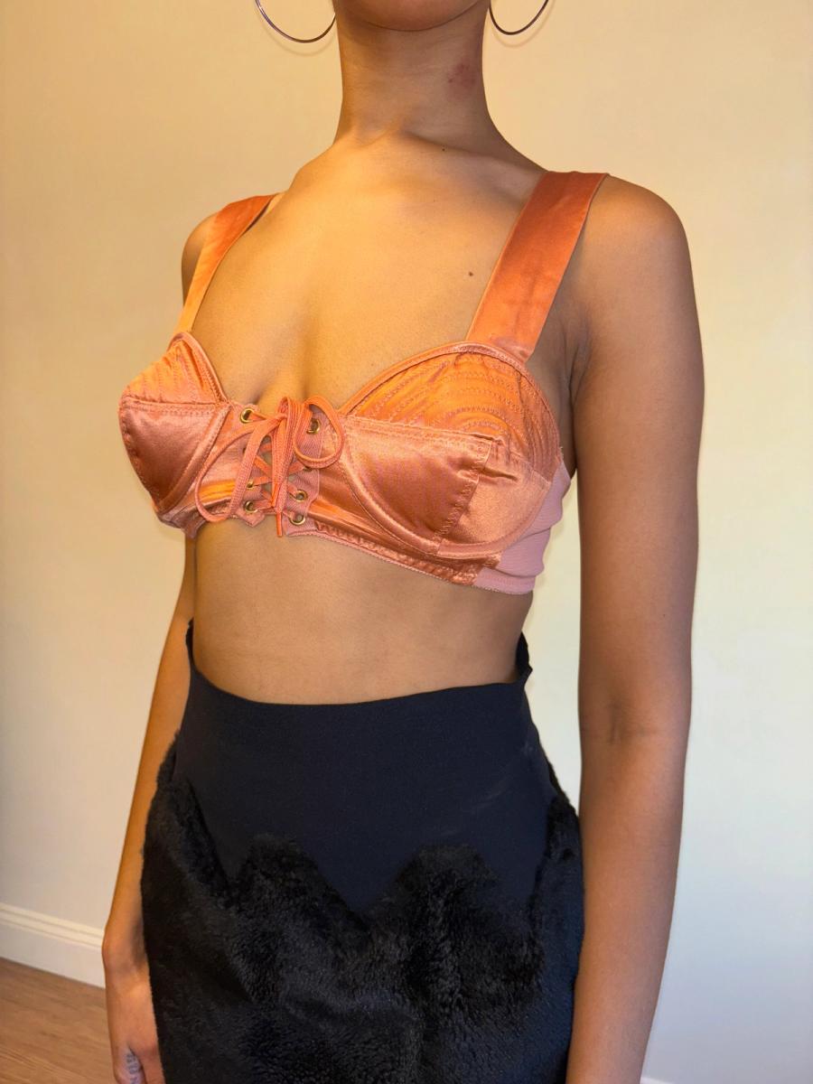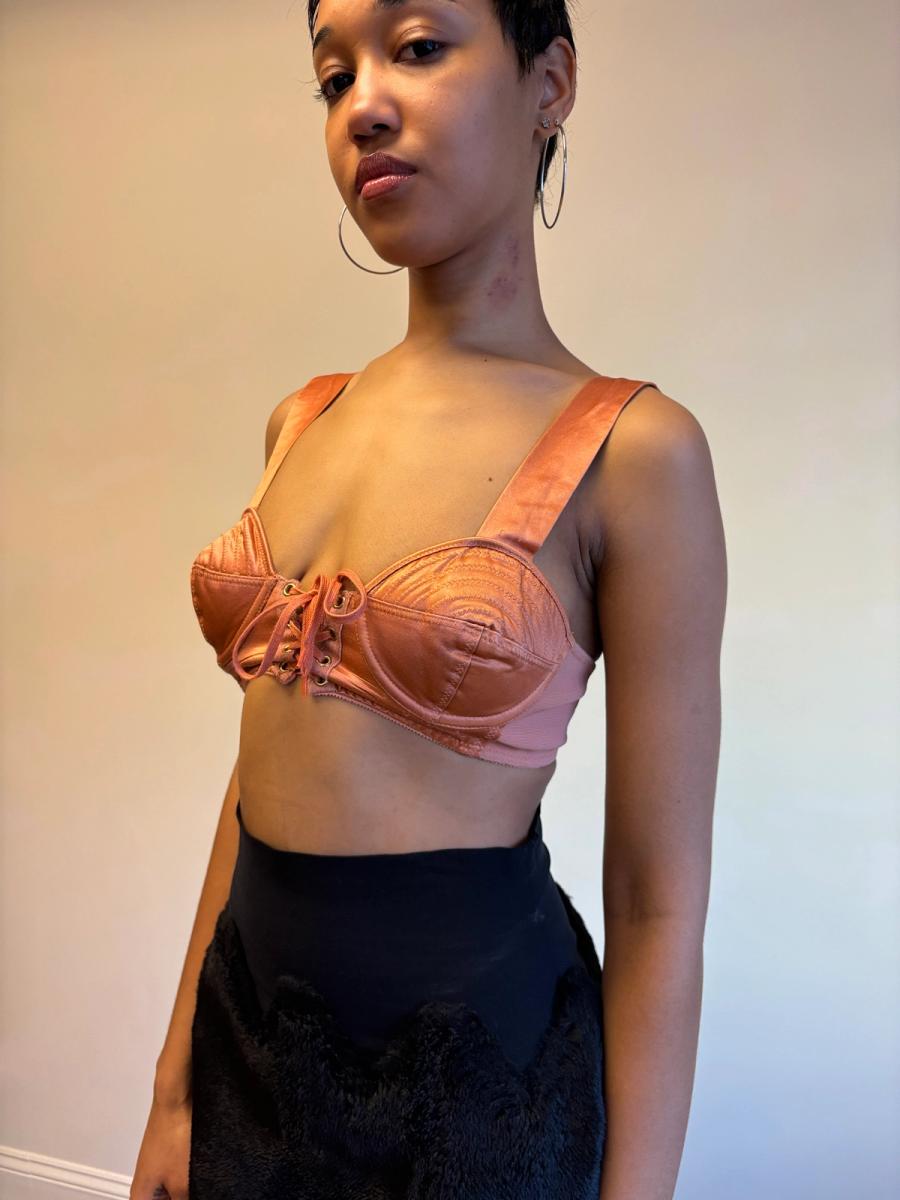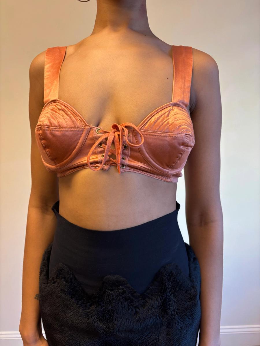 1980s Gaultier Junior Peach Satin Bullet Bra Top