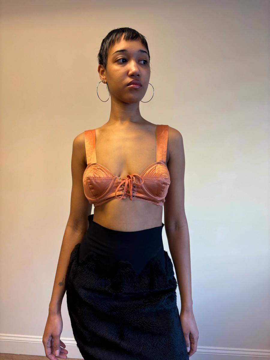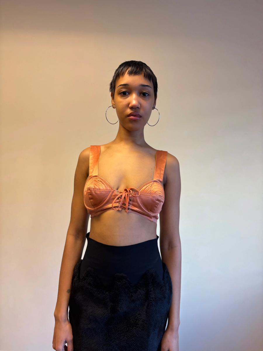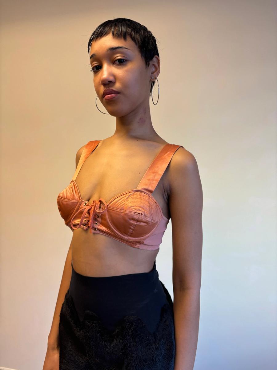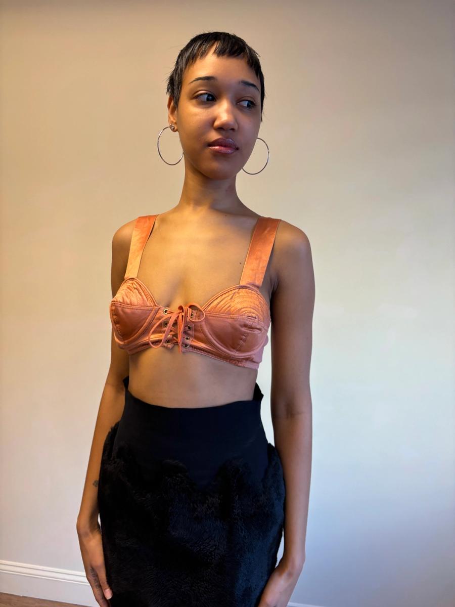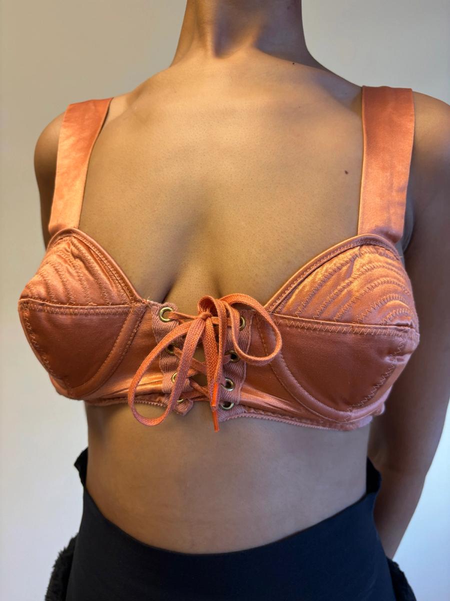1980s Gaultier Junior Peach Satin Bullet Bra Top