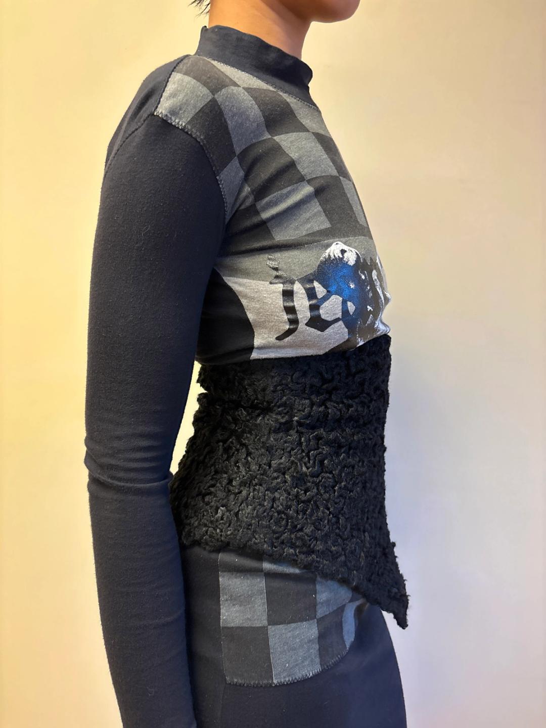1980s Gibo Gaultier Faux Astrakhan Corset