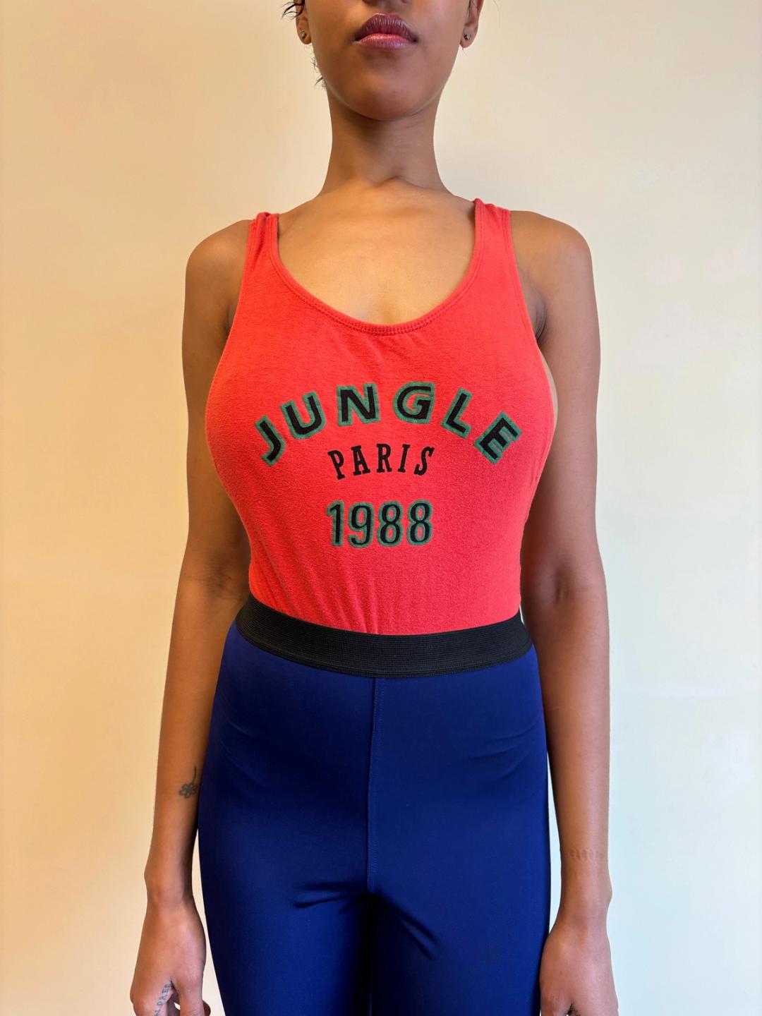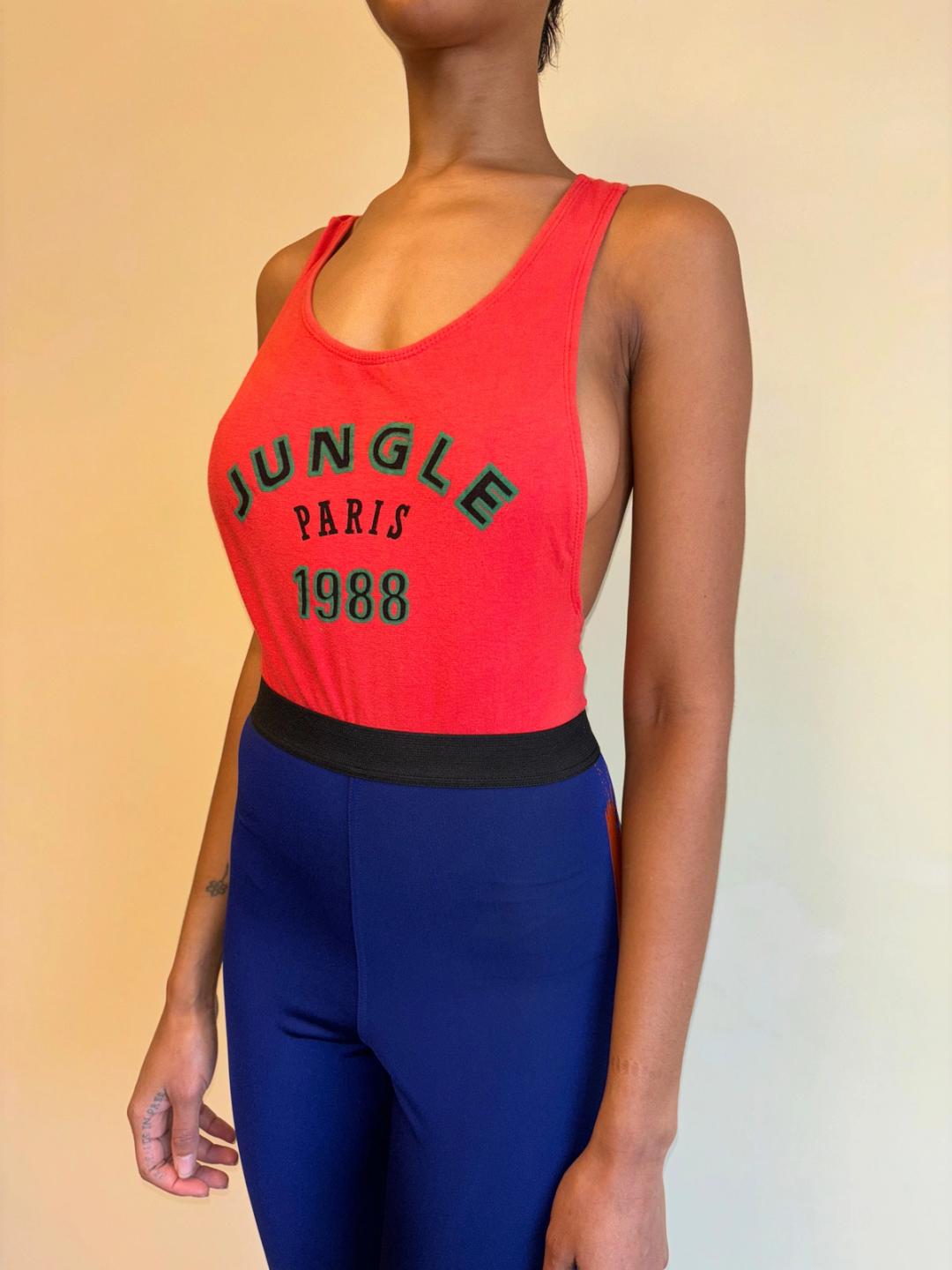 Rare 1980s cotton leotard by Jungle Paris. The leotard is quite vibrant for its age and has a flattering cutout back design. It's quite stretchy!