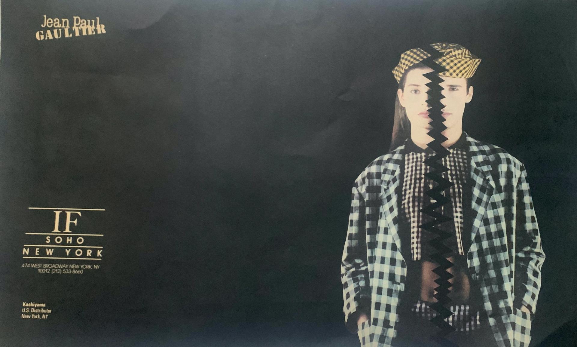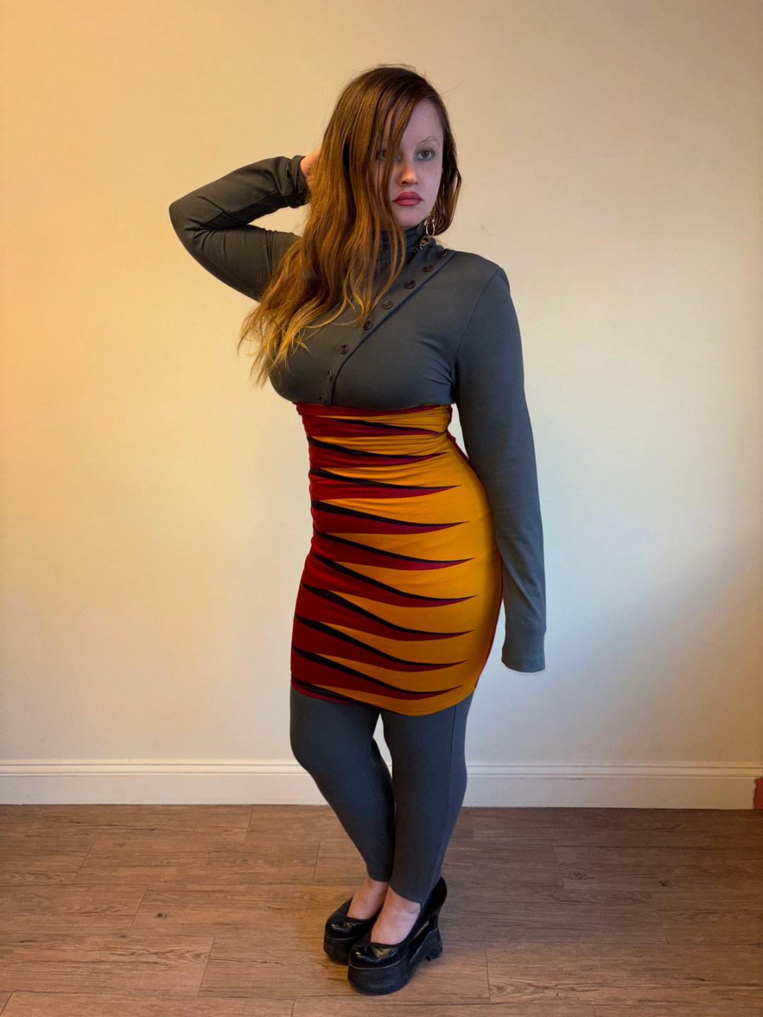 Iconic and rare early Jean- Paul Gaultier Junior jagged line skirt from his 1987 collection. A lovely twill fabric with plenty of stretch the skirt sits at the underbust. It is in excellent condition, apart from a small mark on the side (pictured).