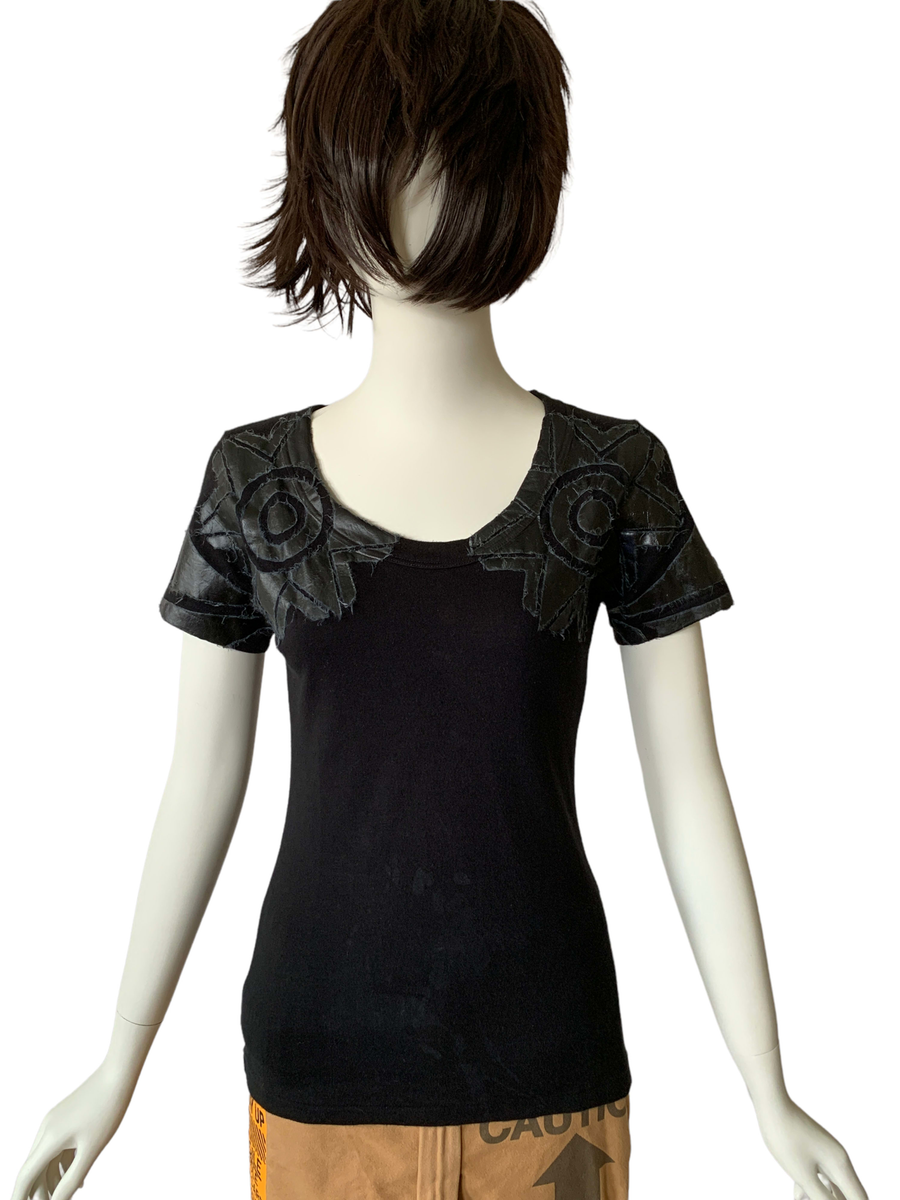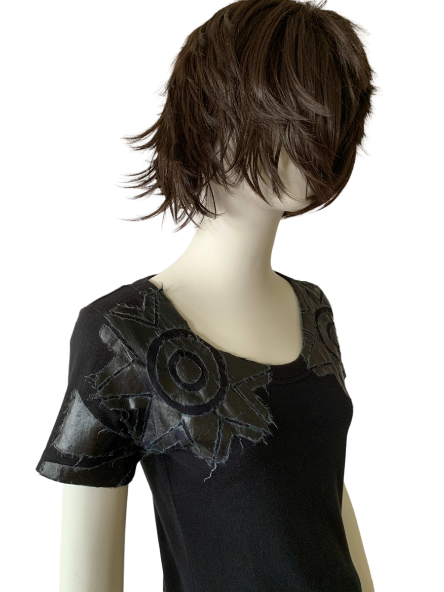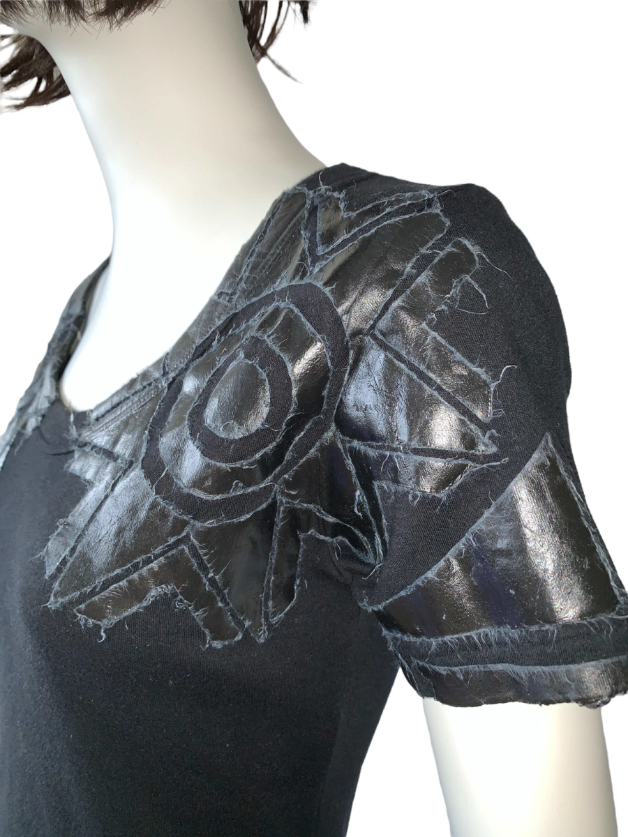 Rare shirt from the 1990s by cult label, 20471120. It is from the A/W '98 "LINK" collection era. The shirt features a geometric design composed of pasted on Japanese paper, over the chest area. The paper is of a thick and sturdy quality and treated somehow, so no need to worry about fragility. There is a fraying of the paper pieces on the shirt that is original to the design. Some slight discoloration on the shirt (see images).