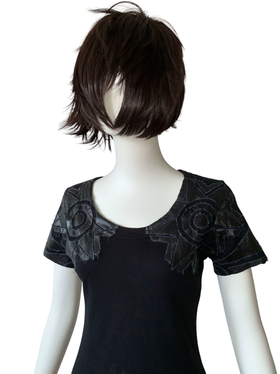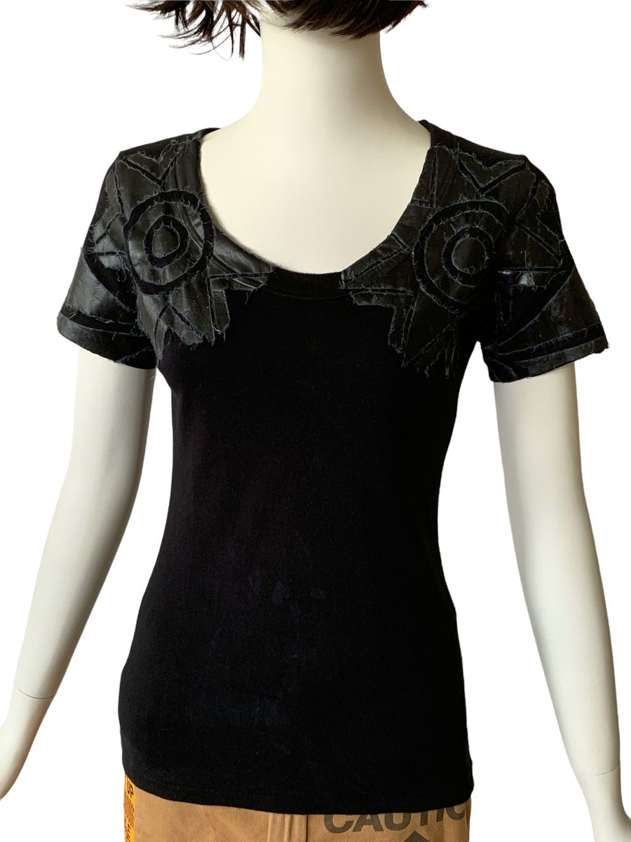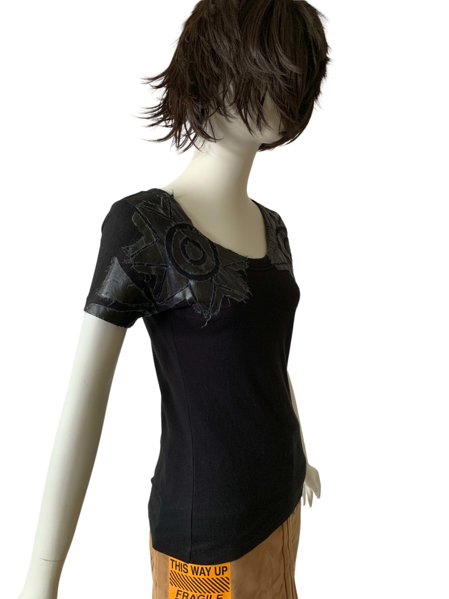 Rare shirt from the 1990s by cult label, 20471120. It is from the A/W '98 "LINK" collection era. The shirt features a geometric design composed of pasted on Japanese paper, over the chest area. The paper is of a thick and sturdy quality and treated somehow, so no need to worry about fragility. There is a fraying of the paper pieces on the shirt that is original to the design. Some slight discoloration on the shirt (see images).