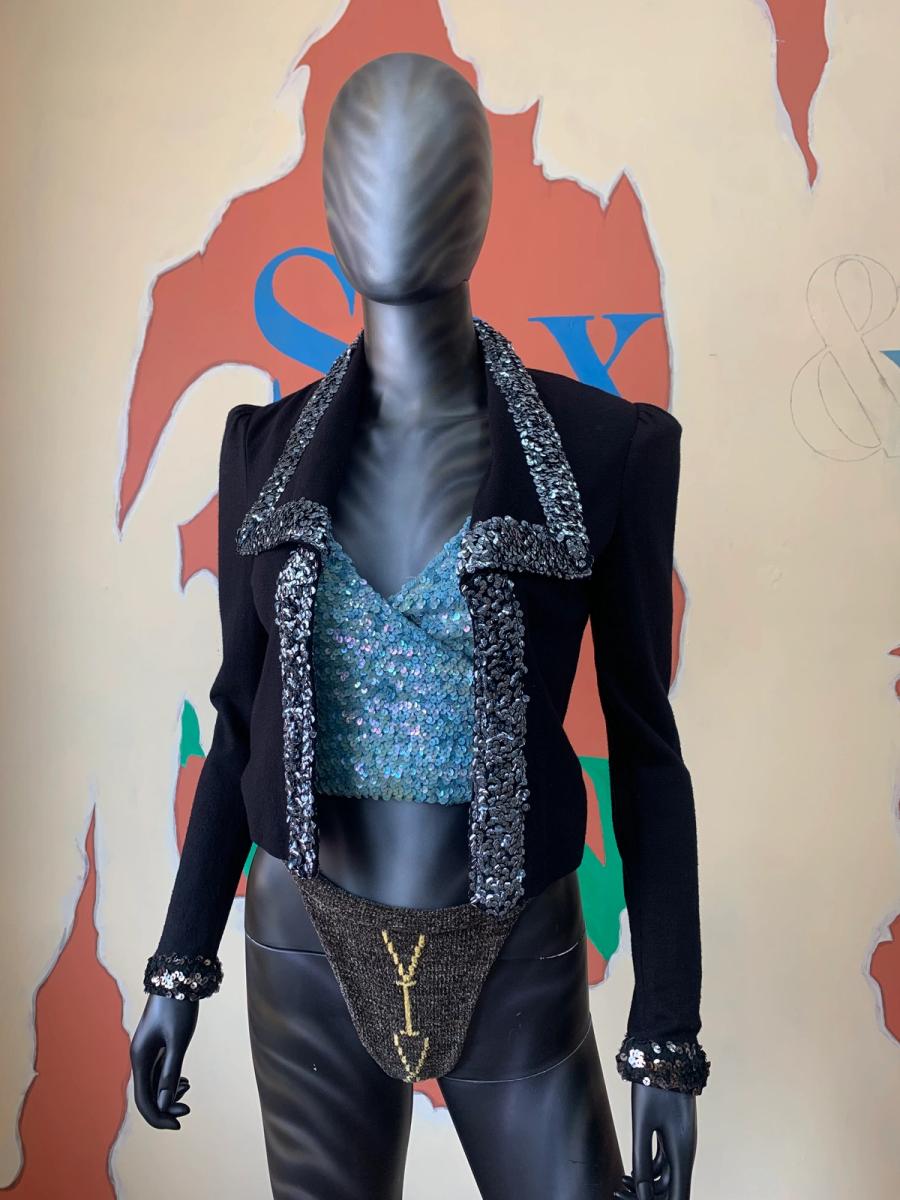 Rare jacket from 70s Biba, Barbara Hulanicki's iconic British boutique. The jacket features the lovely original Biba label as well as the side tag noting the signature of the girl who manufactured it (Sallie) ! It is made from a light wool jersey and is stretchy and fairly open size due to the design. It has some scattered small moth bites (pictured) but not very prominent.