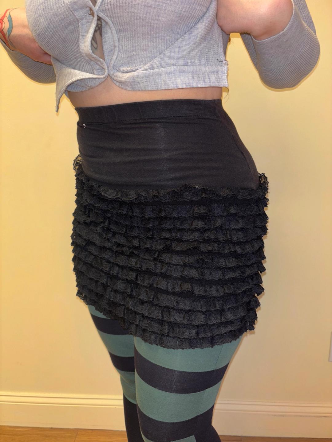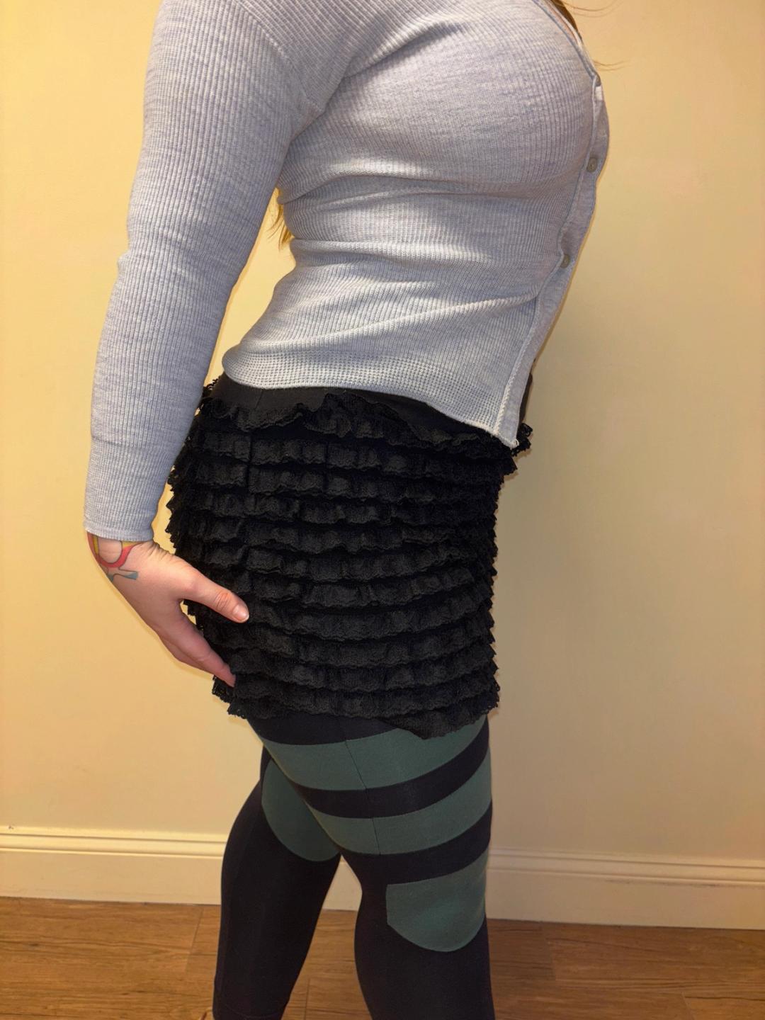 1980s Suite by Chantal Thomass ruffled high-waisted mini skirt. Very stretchy and size flexible-- fits XS-L. In great vintage condition with only a slight feeling of use with no significant flaws to note.