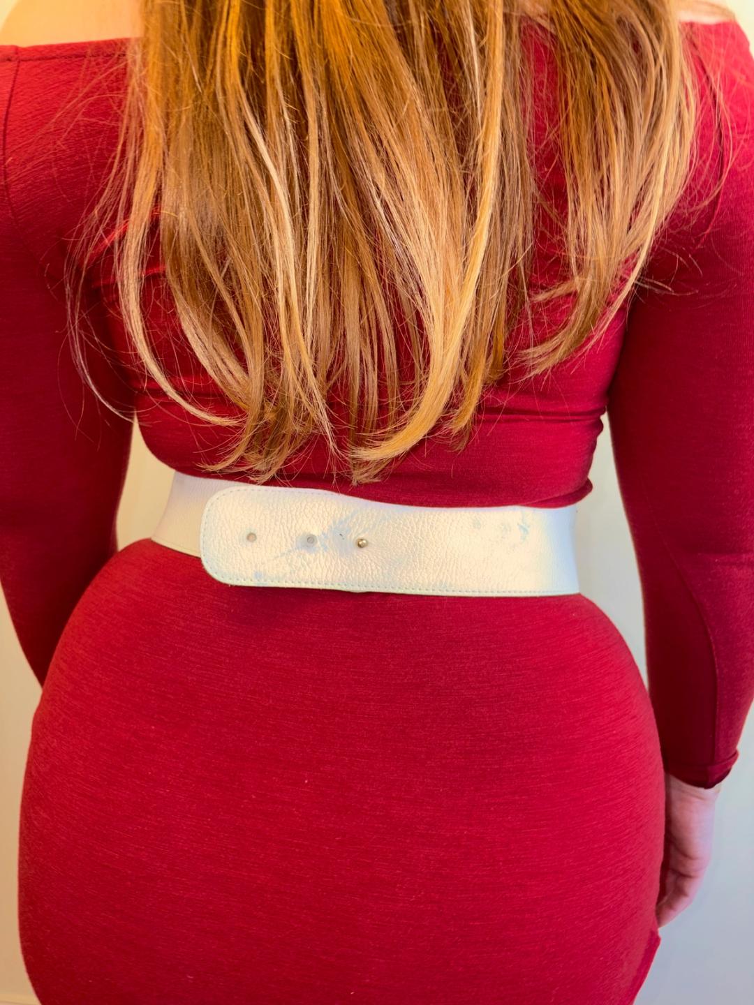 1980s belt with an abstract design from France. The belt is made of white leather and metal. It has a plush leopard cutout. Waist: 13.5"-15.25".
