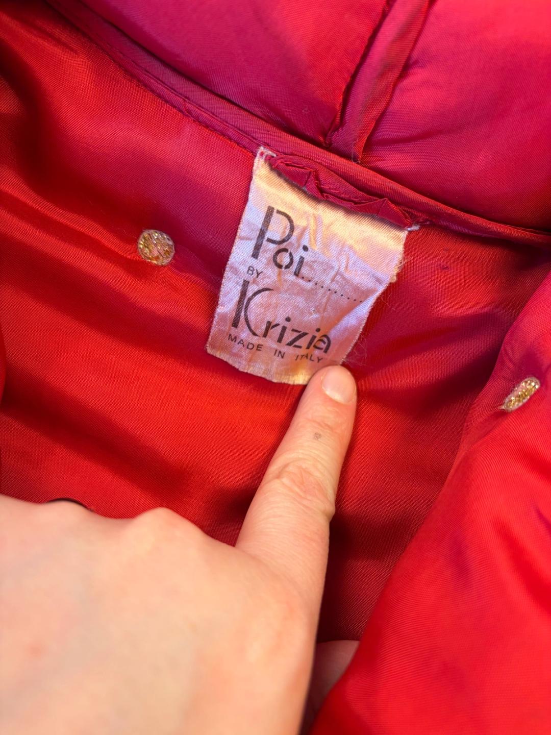 1980s Krizia quilted satin puffer with oversized paisley print. The quilting is done with little gold embroidery dotting the jacket. The interior lining is vivid red satin. It has pockets and closes in the front with buttons. In excellent vintage condition.