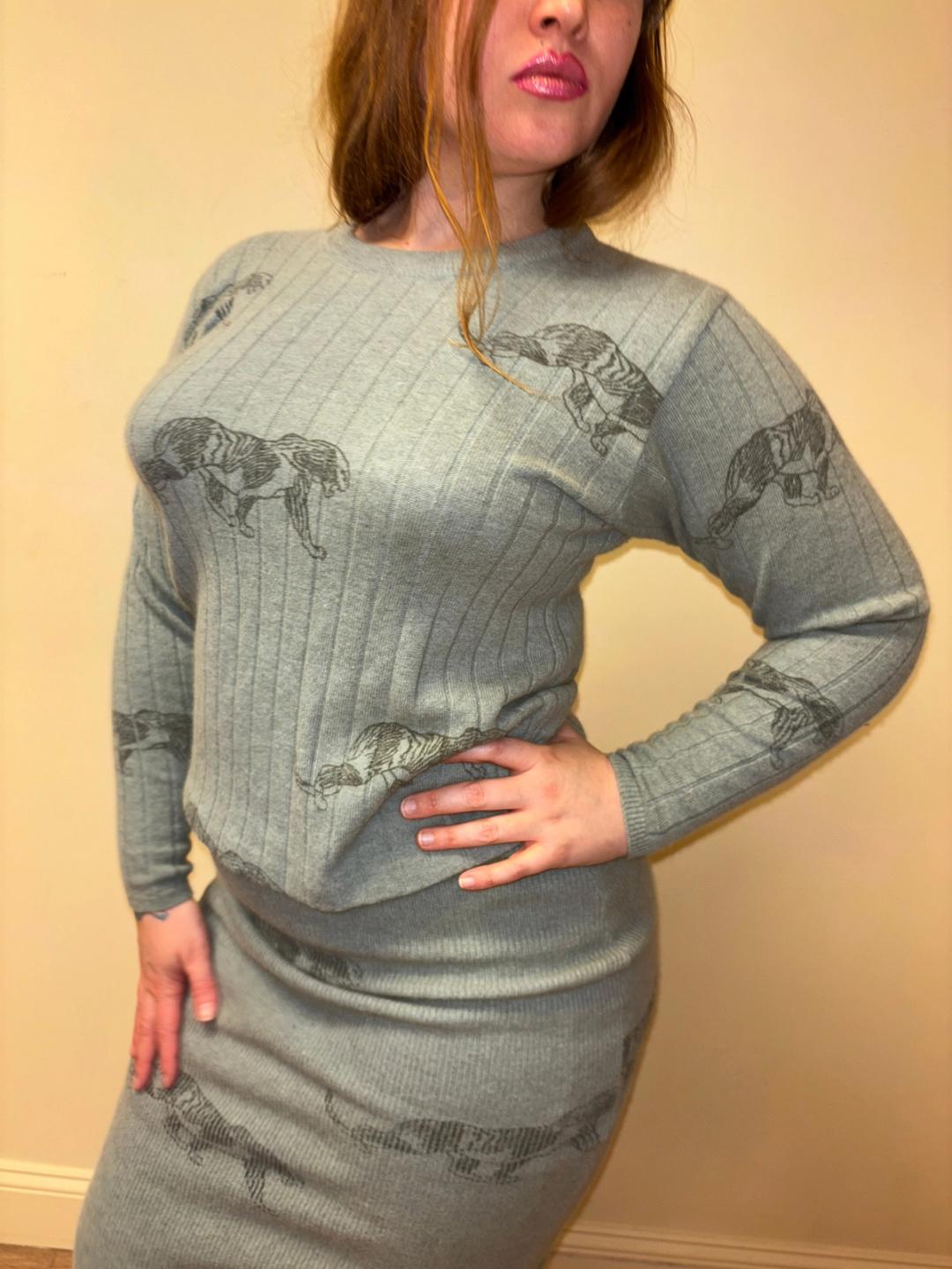 80s Krizia Panther Print Knit Set