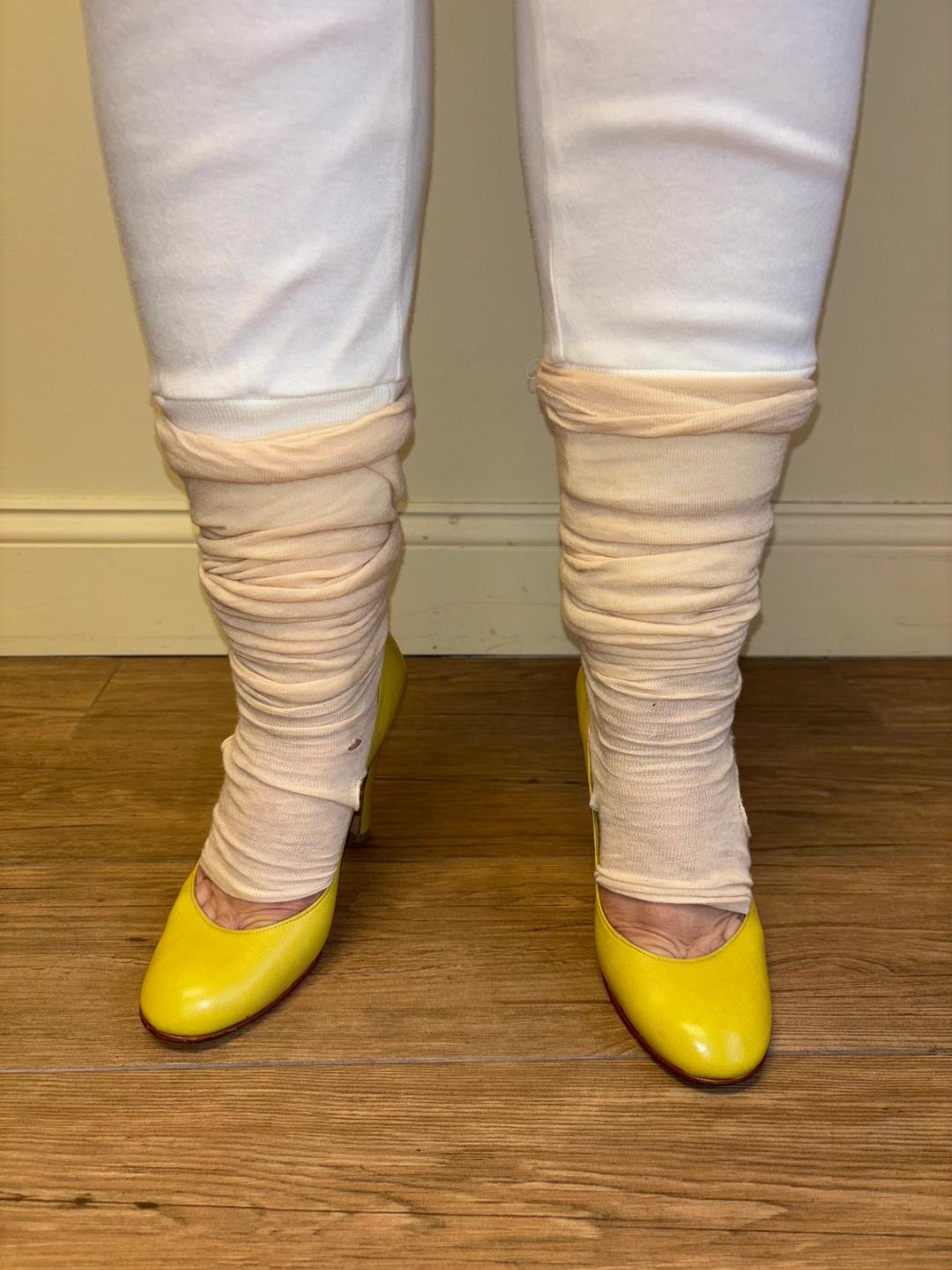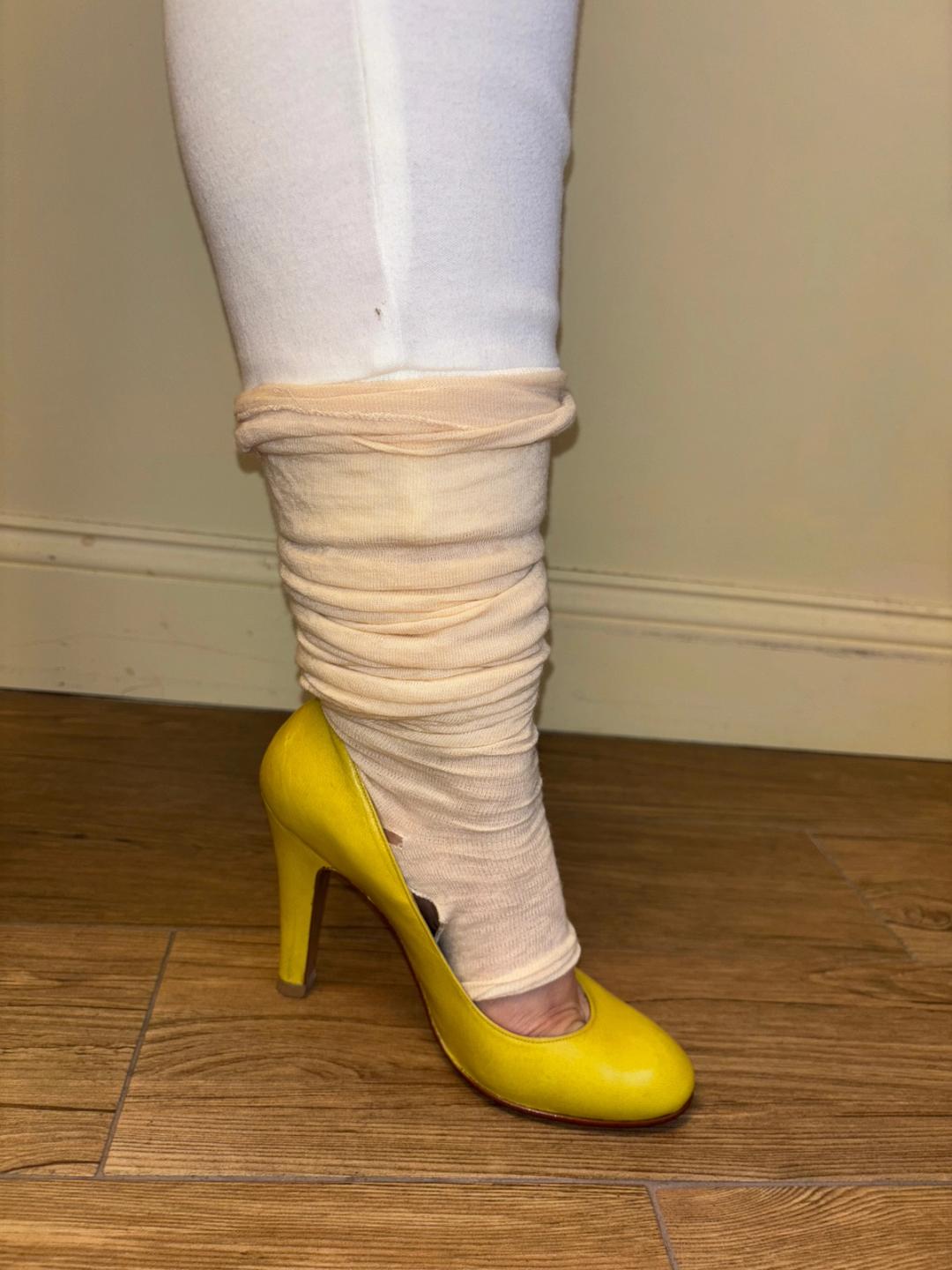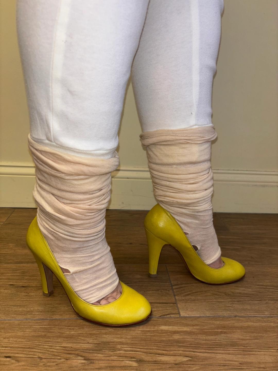 Sexy 80s Norma Kamali yellow leather pumps. The pumps are in excellent vintage condition. Marked a size 7.5.