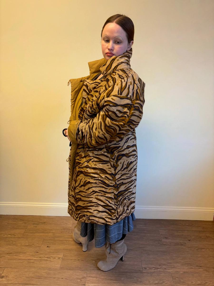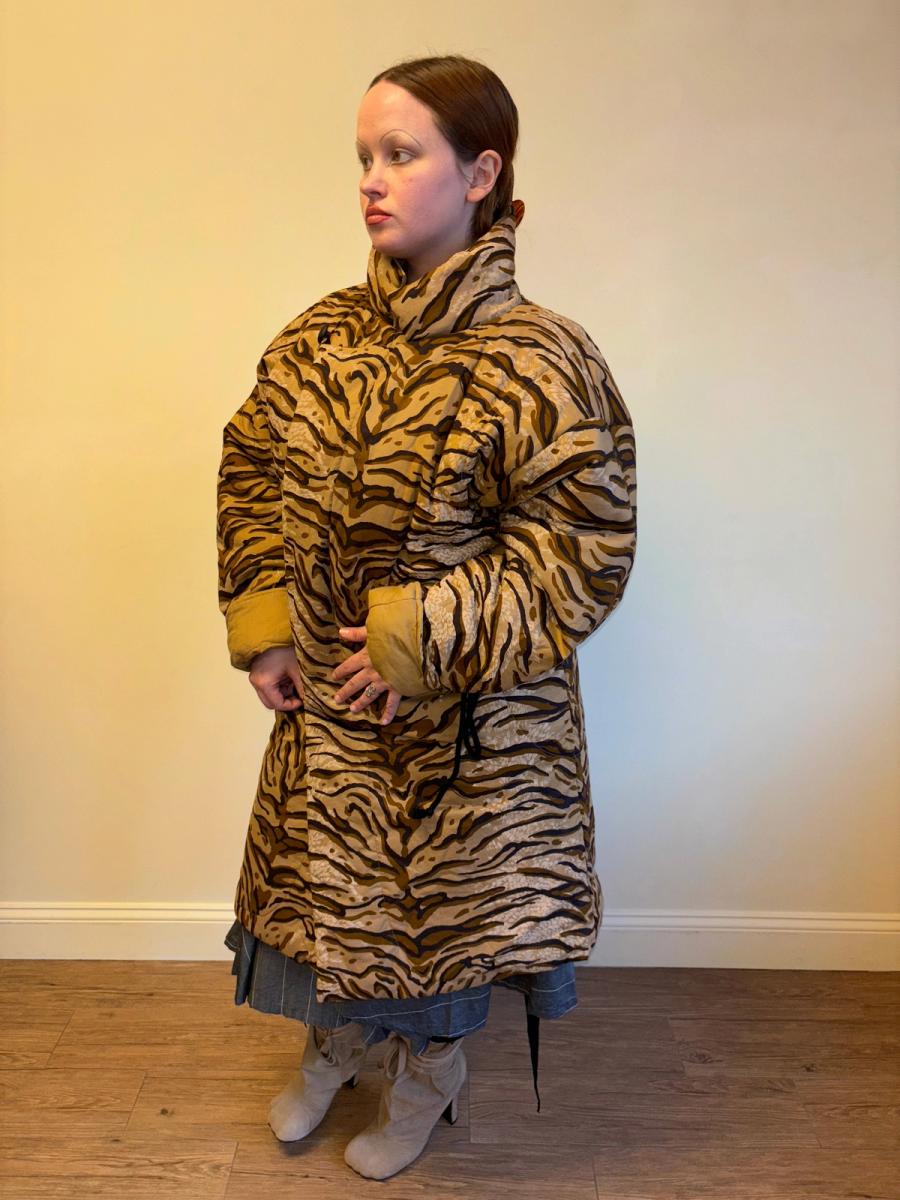 90s Norma Kamali Tiger Print Sleeping Bag Coat