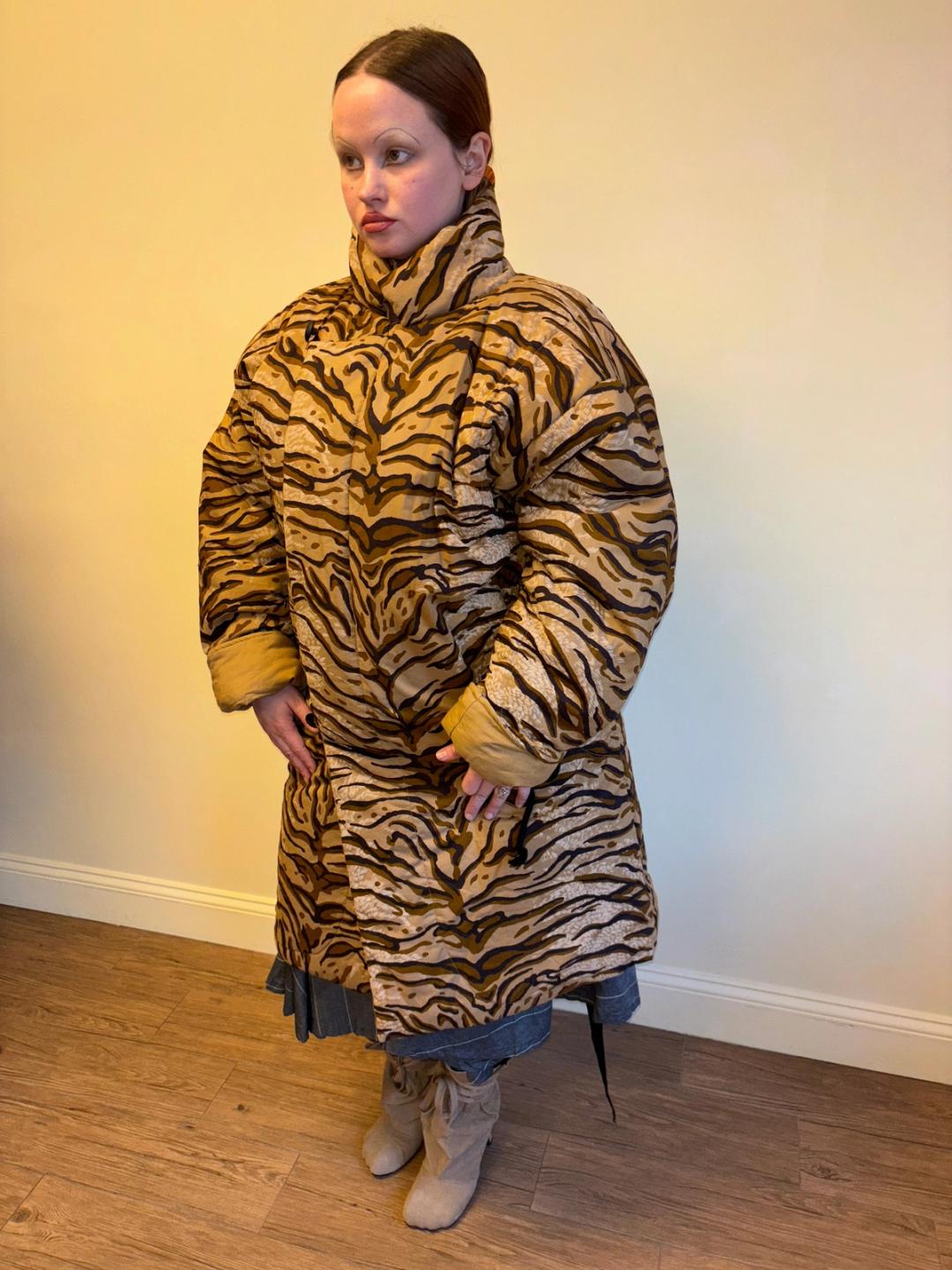 90s Norma Kamali Tiger Print Sleeping Bag Coat