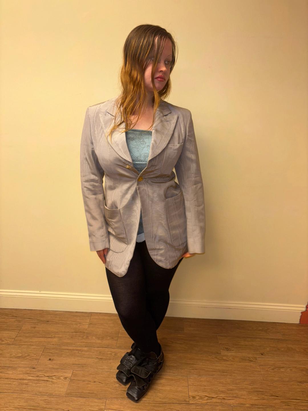 90s Westwood Lavender Moiré Jacket With Engraved Orb Buttons