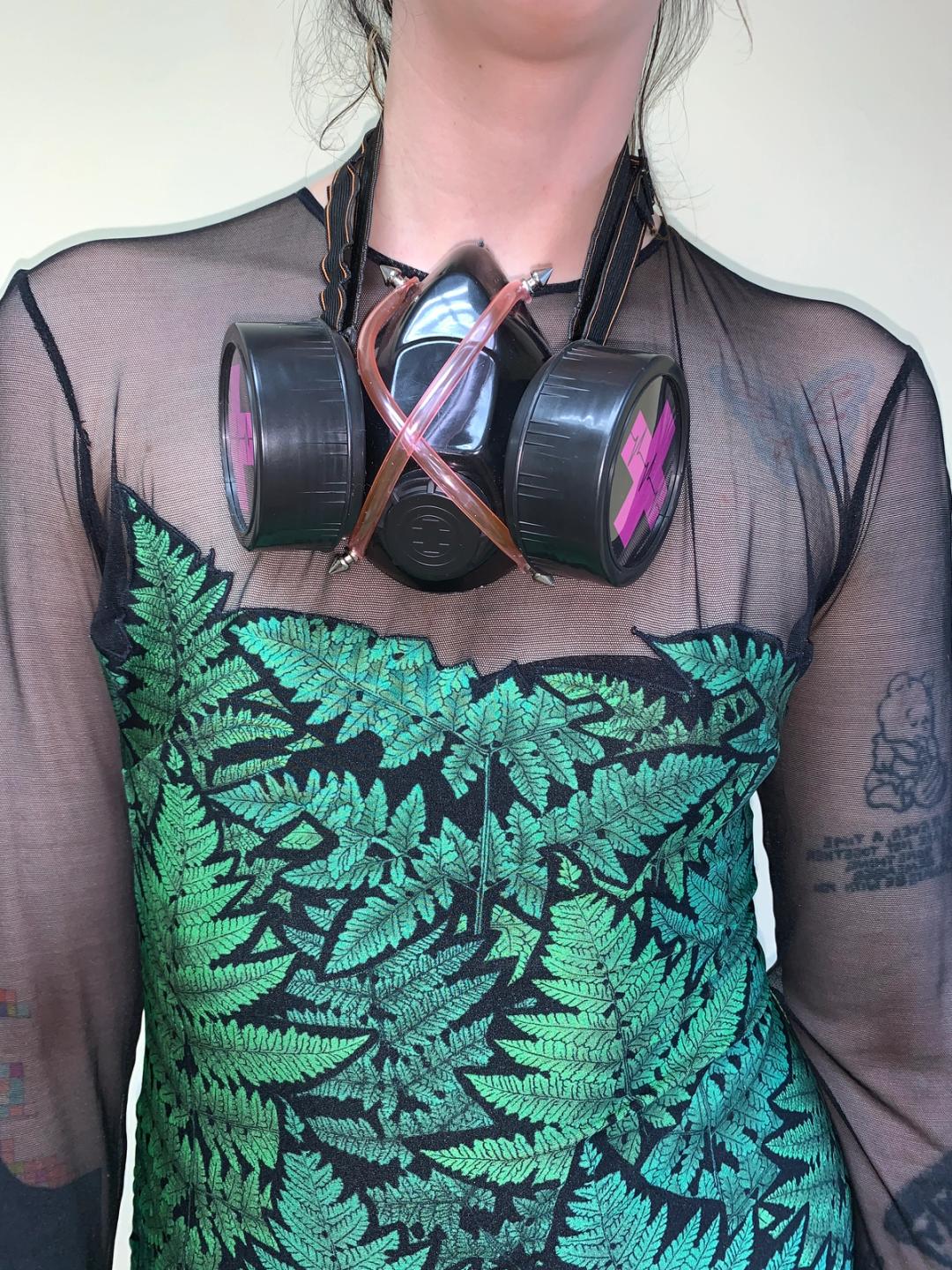 Rare and unusual early 2000s mask by raver label, AIKA Electronics. The gas mask has an EKG medical cross graphic and IV tubes and studs on it. One size fits most.