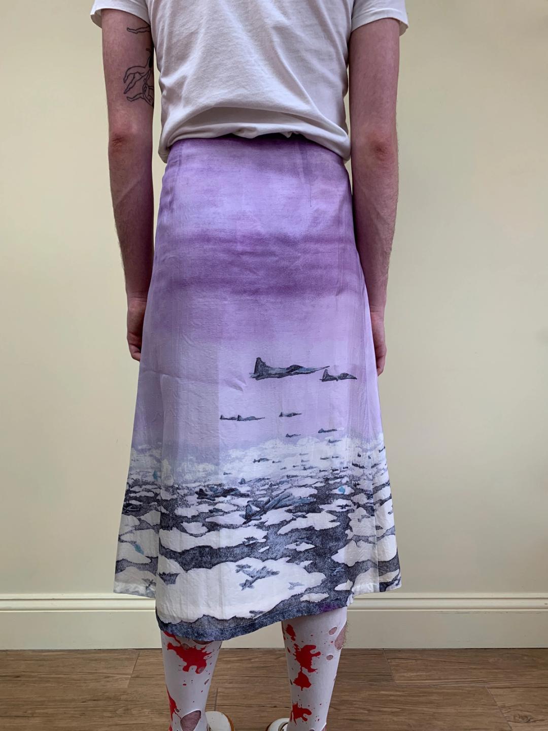Vintage skirt by Alfaspin. The skirt has an abstract print either of icebergs or jets in the sky amongst clouds. Either way the print has a hauntingly beautiful effect.