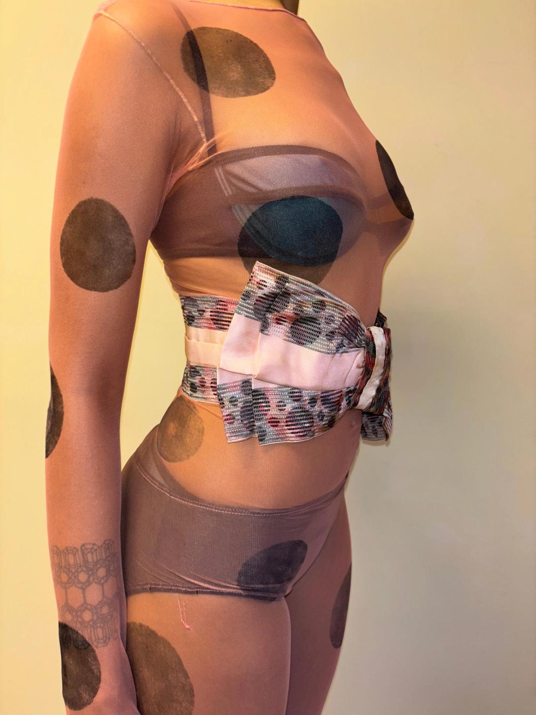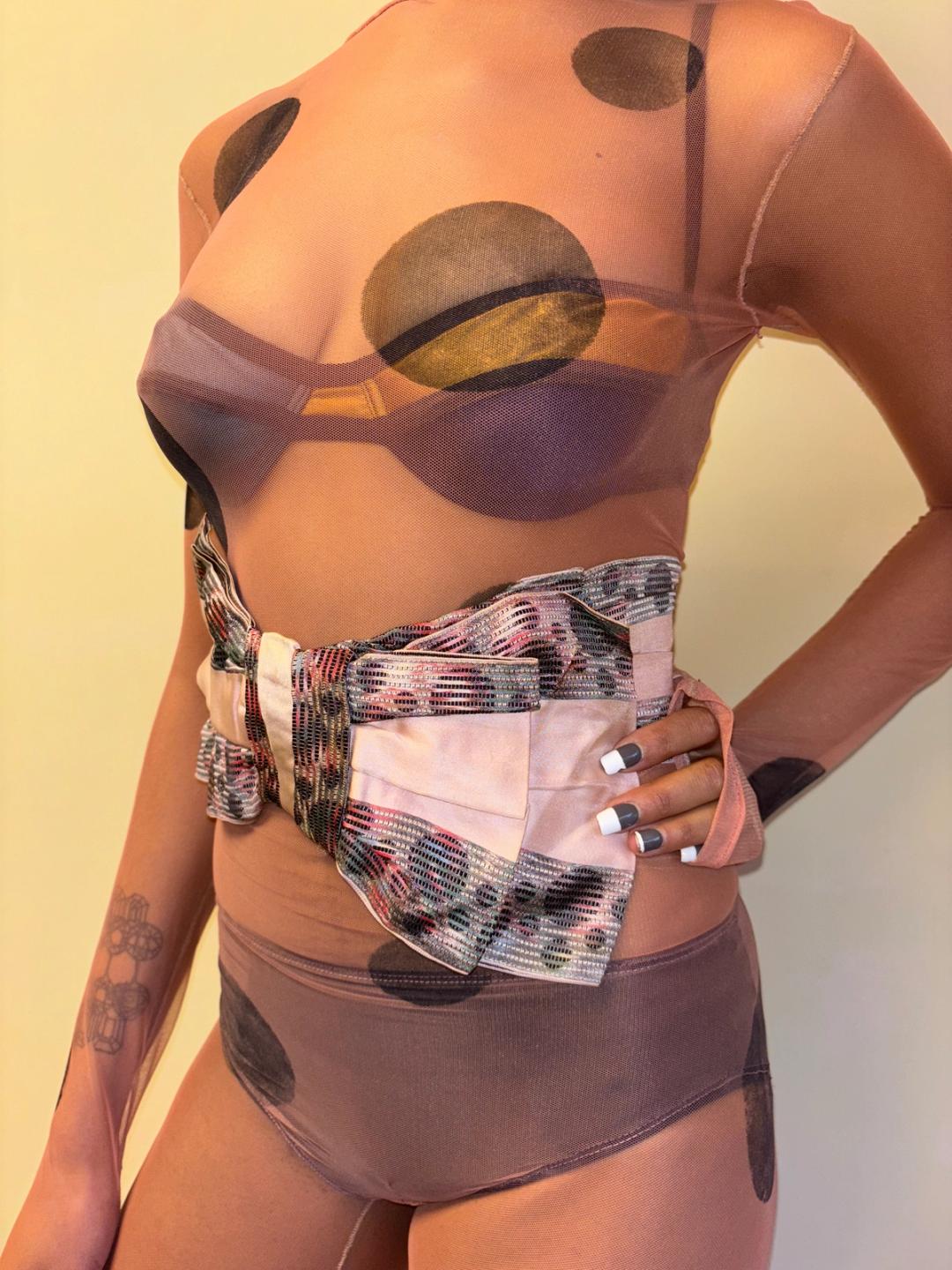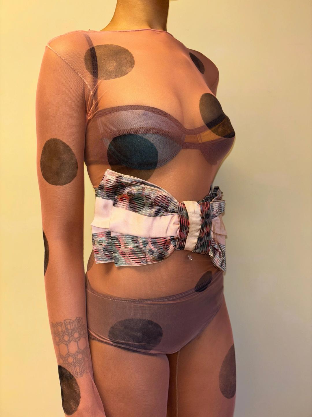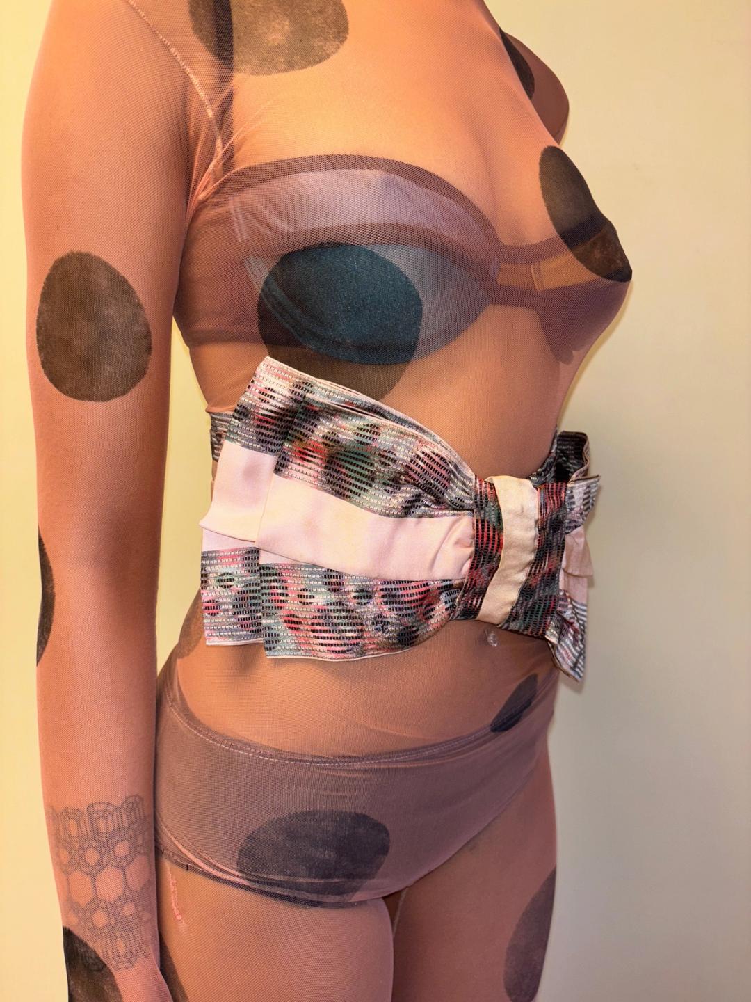 Stunning Edwardian or Victorian bubble print silk bow belt. The bow has boning for structure. It's in sturdy wearable condition.