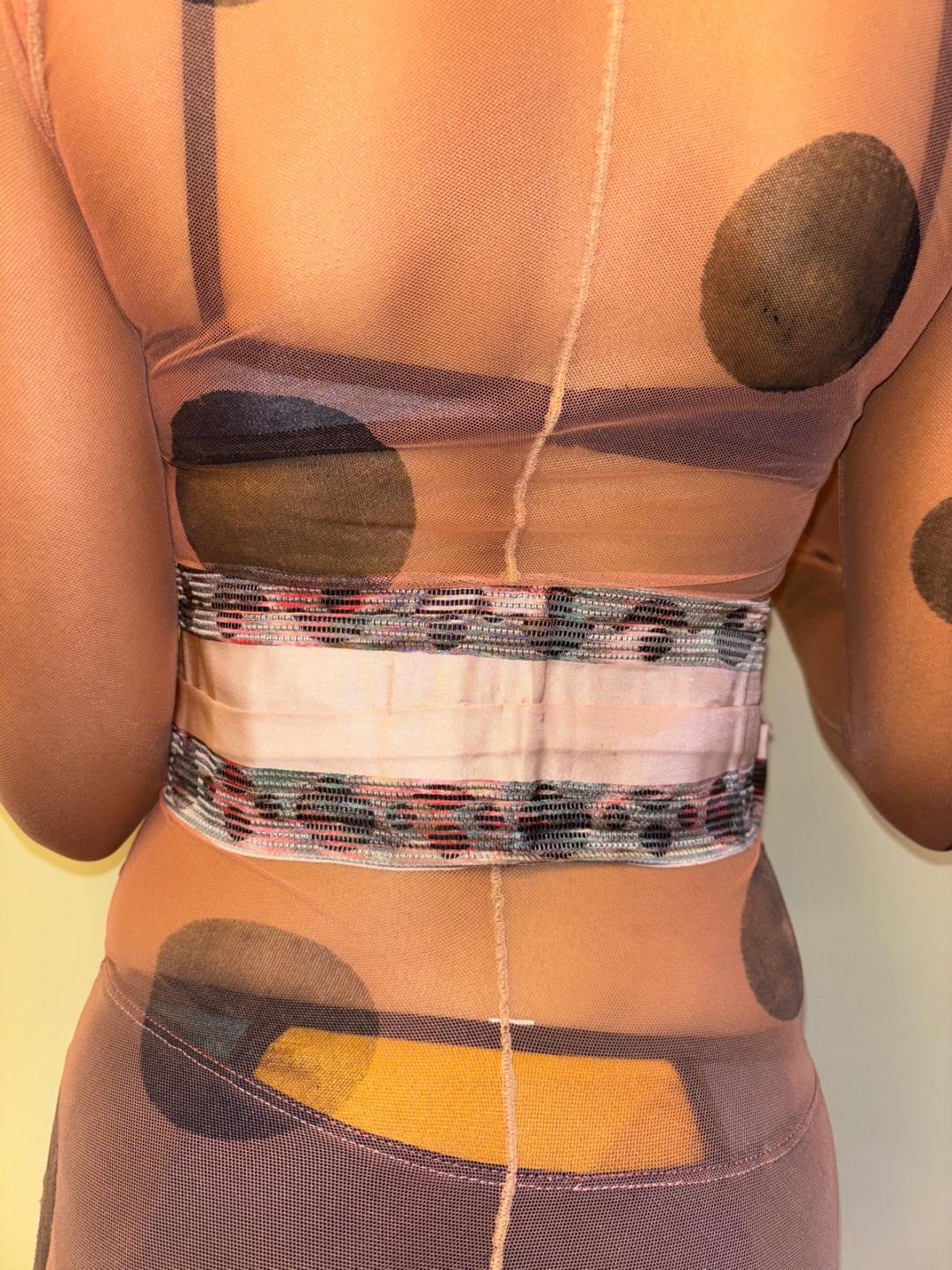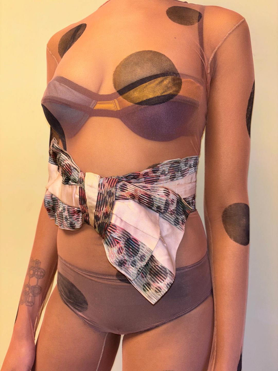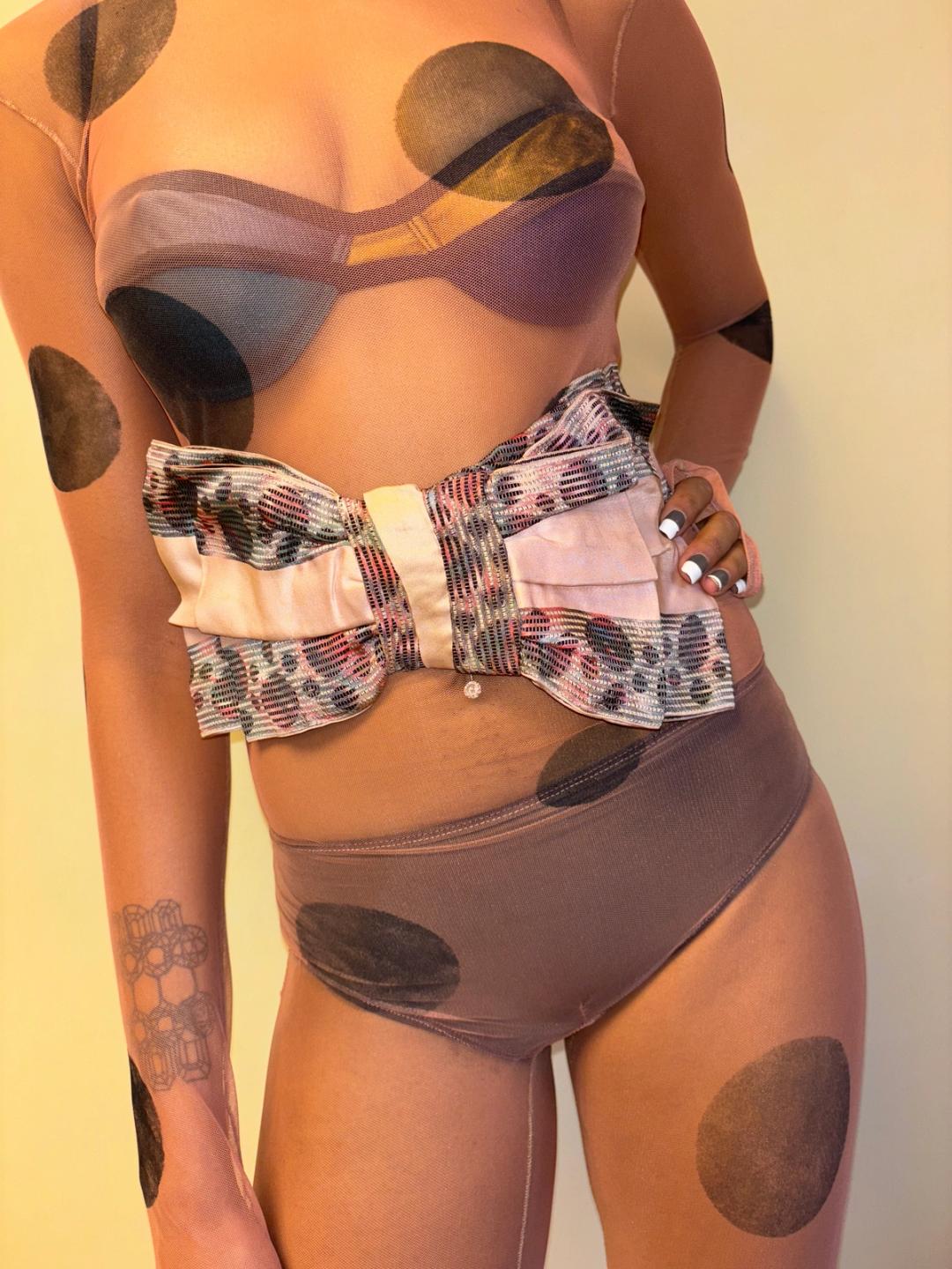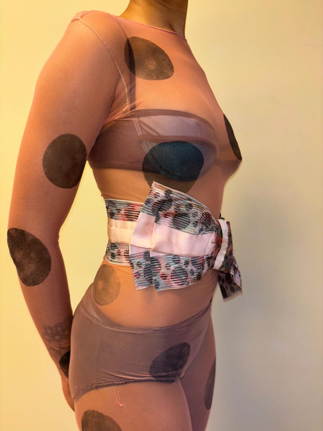 Stunning Edwardian or Victorian bubble print silk bow belt. The bow has boning for structure. It's in sturdy wearable condition.