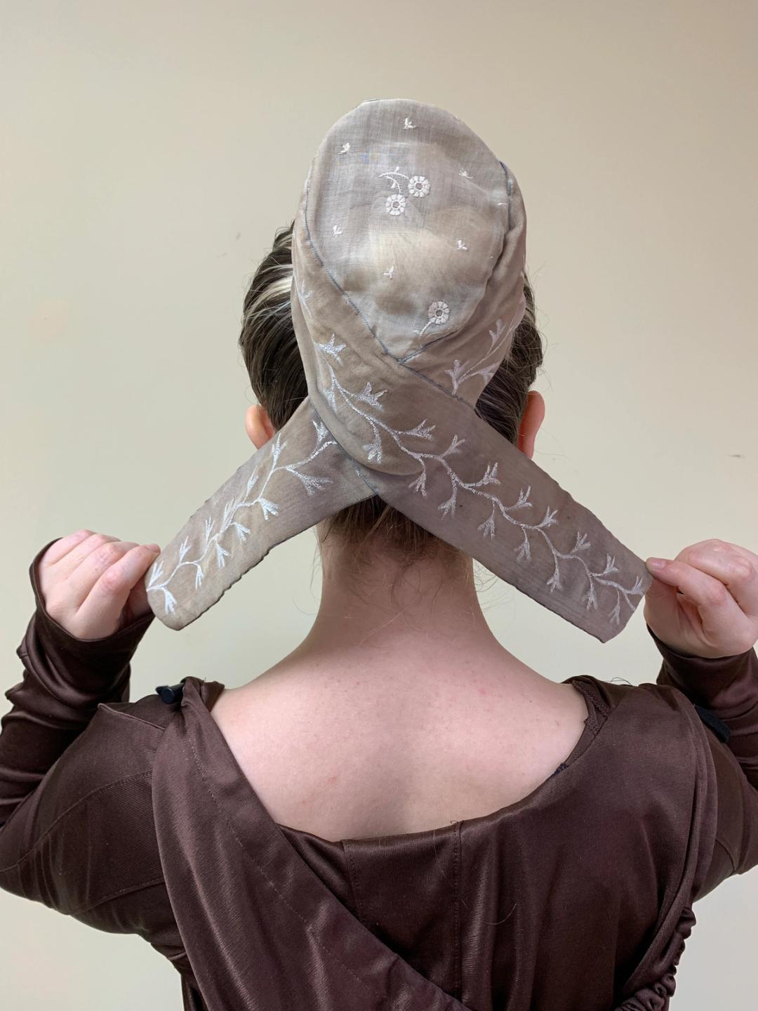 Antique Bun cover from turn of the century Provence, France. It's made of an internal straw woven structure covered in mauve velvet which is block printed in with a lovely vine motif. The top is covered in a sheer embroidered organdy material. It is in beautiful condition with some flaws consistent with its age. Please see photos.