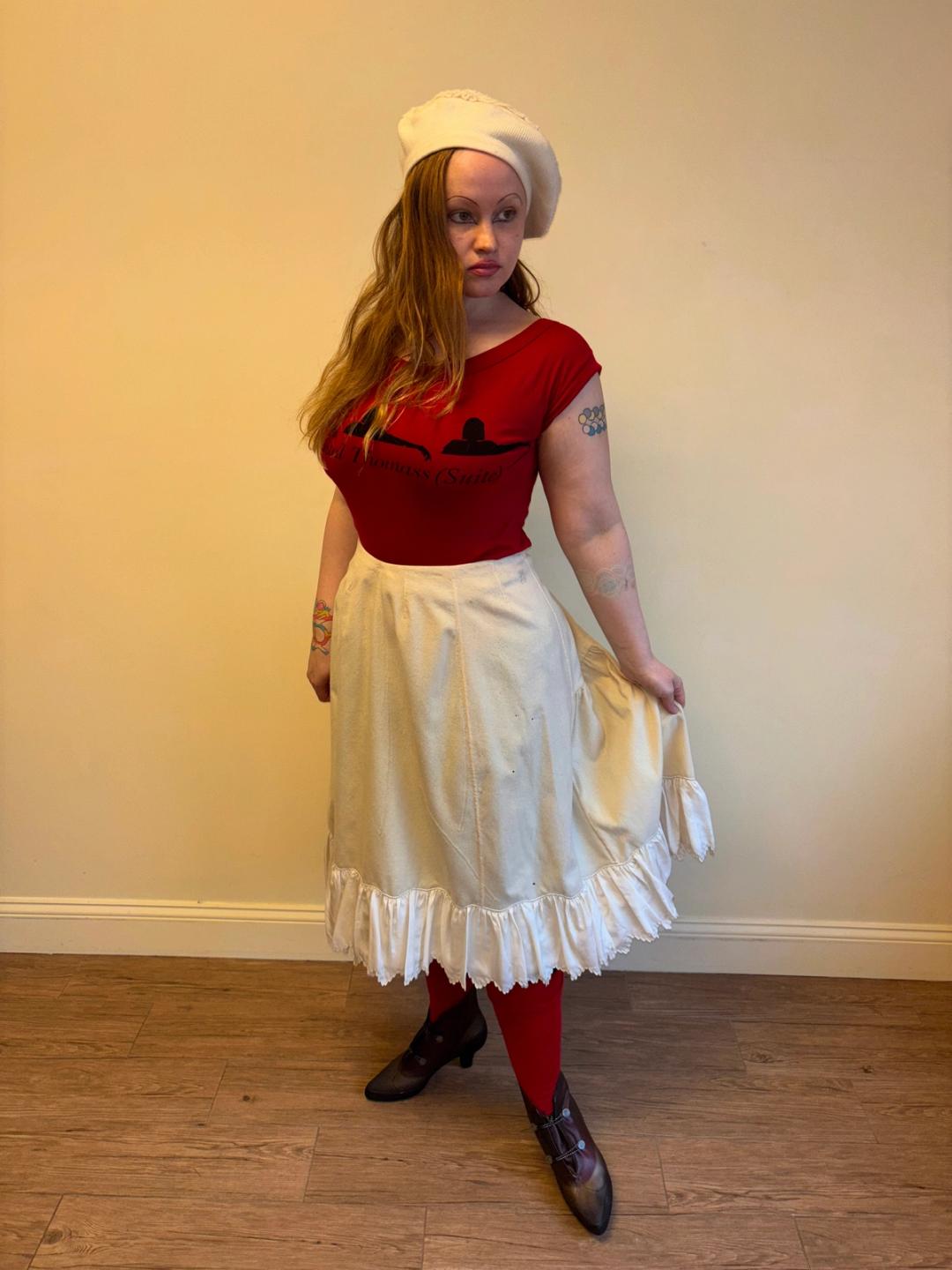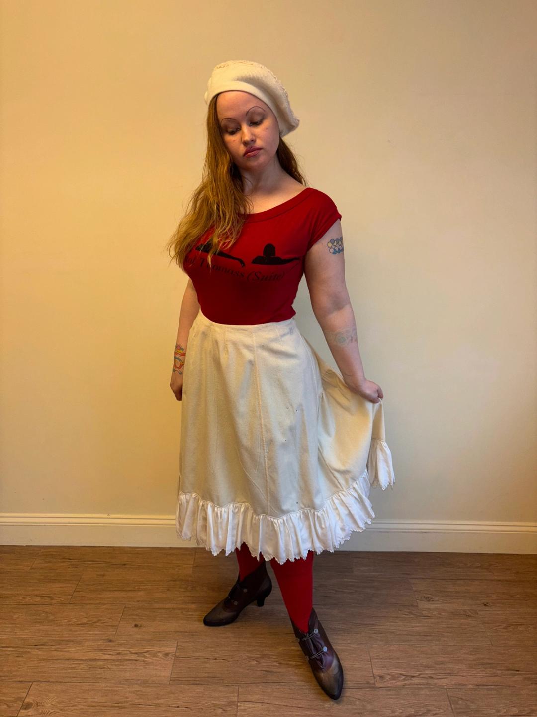 Antique French Short Flannel Petticoat with Scalloped Silk Trim