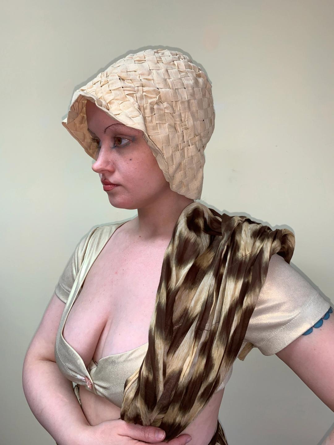 Beautiful cloche hat from 1920s or 1930s France. It is entirely woven from a ribbon-weaving technique using raw silk pieces, a lovely natural bone color. The technique allows it to beautifully meld to the head. Seems brand new, lovely condition.