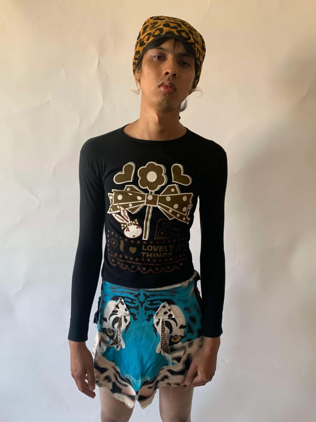 Early 2000s t-shirt from cult label, Antoni & Alison. They became known for their humorous and poetic text based garments, like this one. The long sleeve shirt features the text, 'I Heart Lovely Things' and images of a bunny amongst flowers and hearts. It's made of a stretch cotton.