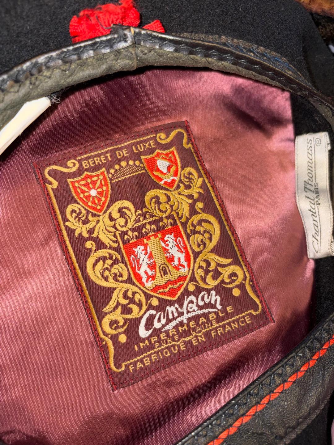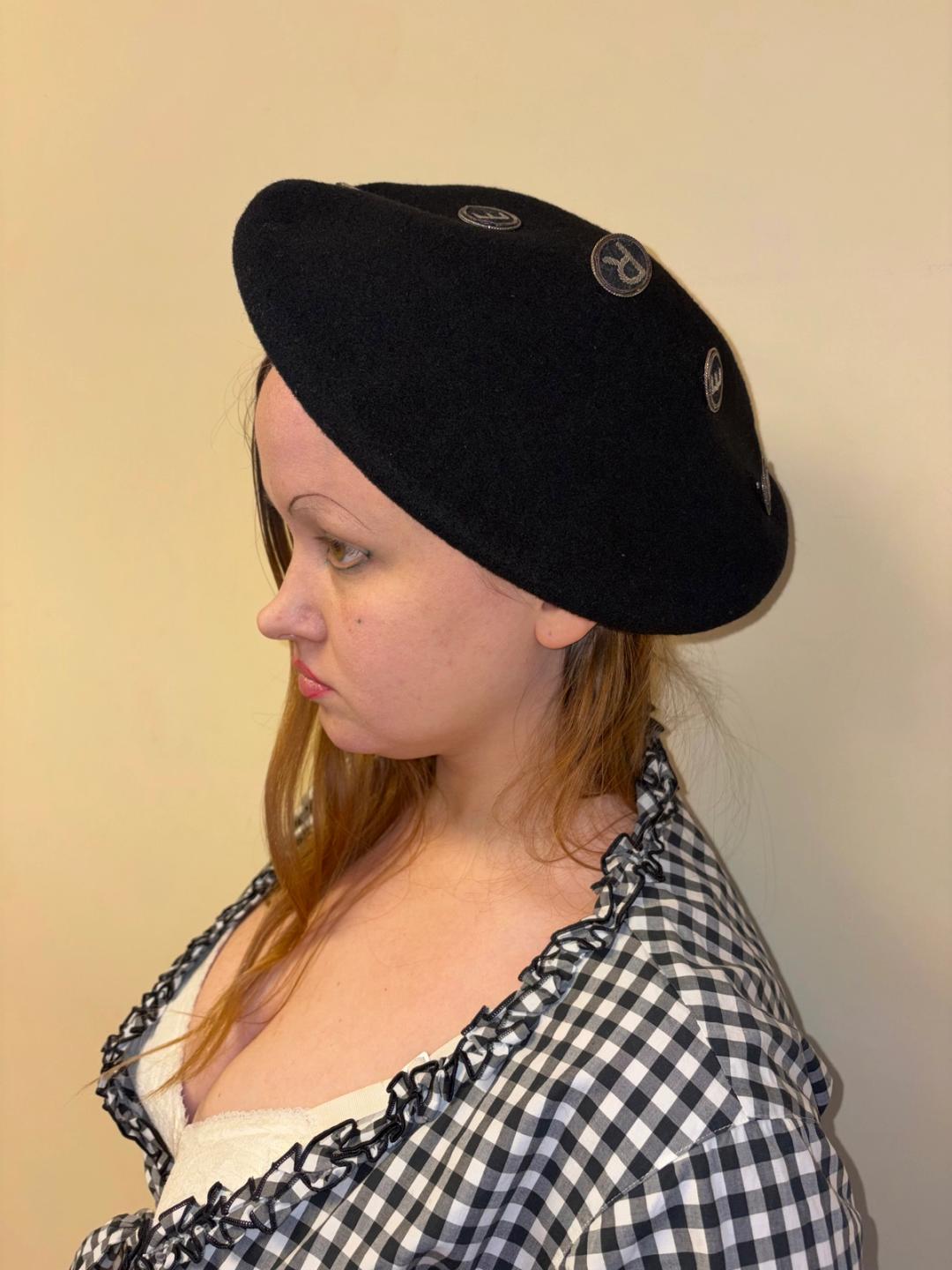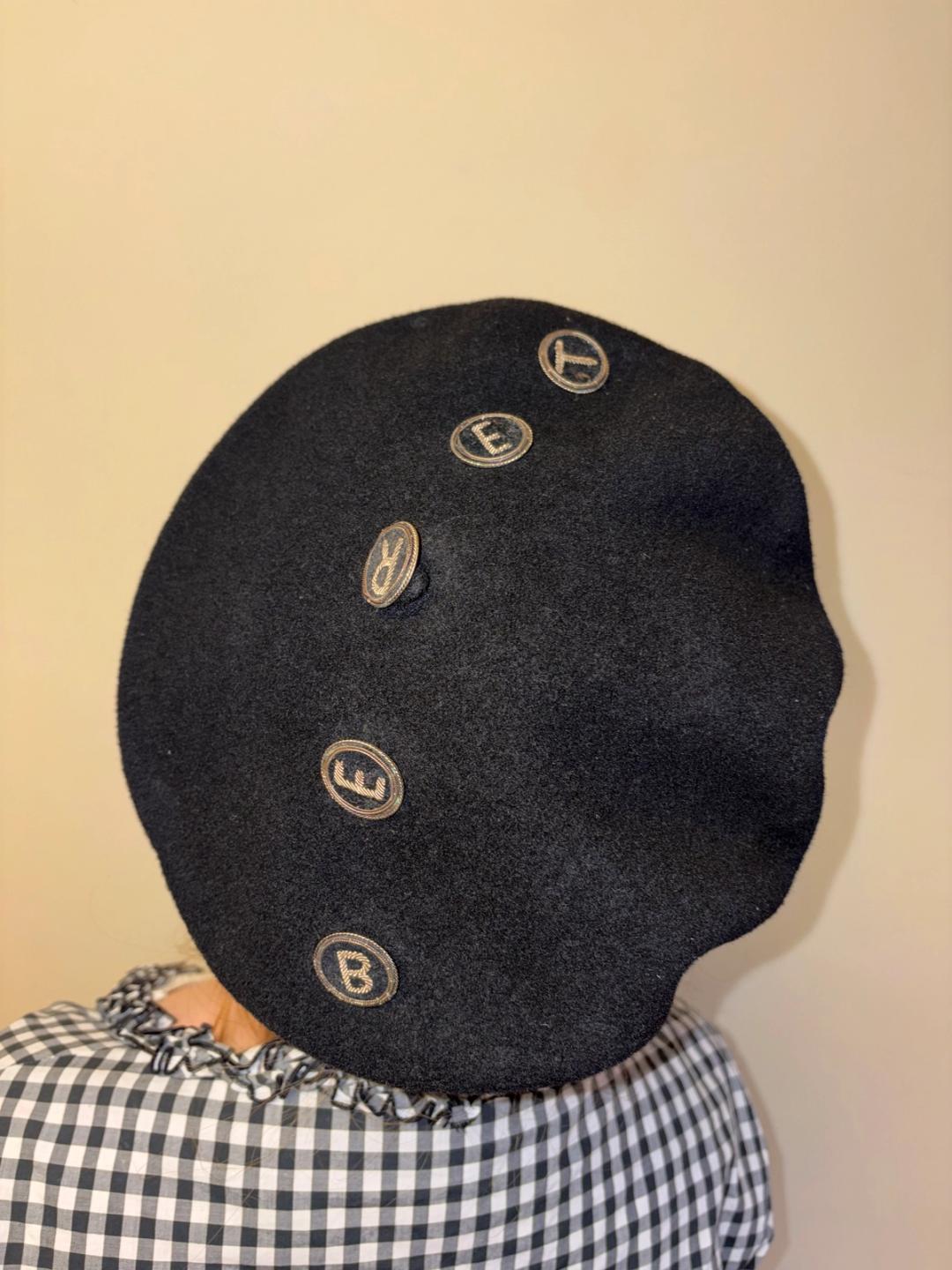 Rare 1980s Chantal Thomass traditional French wool beret with buttons spelling "Beret".