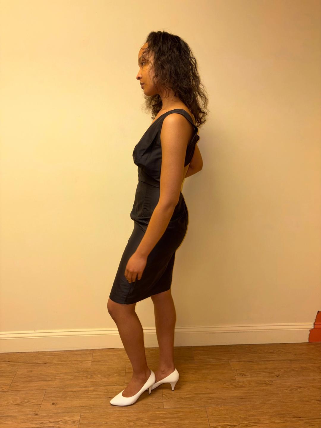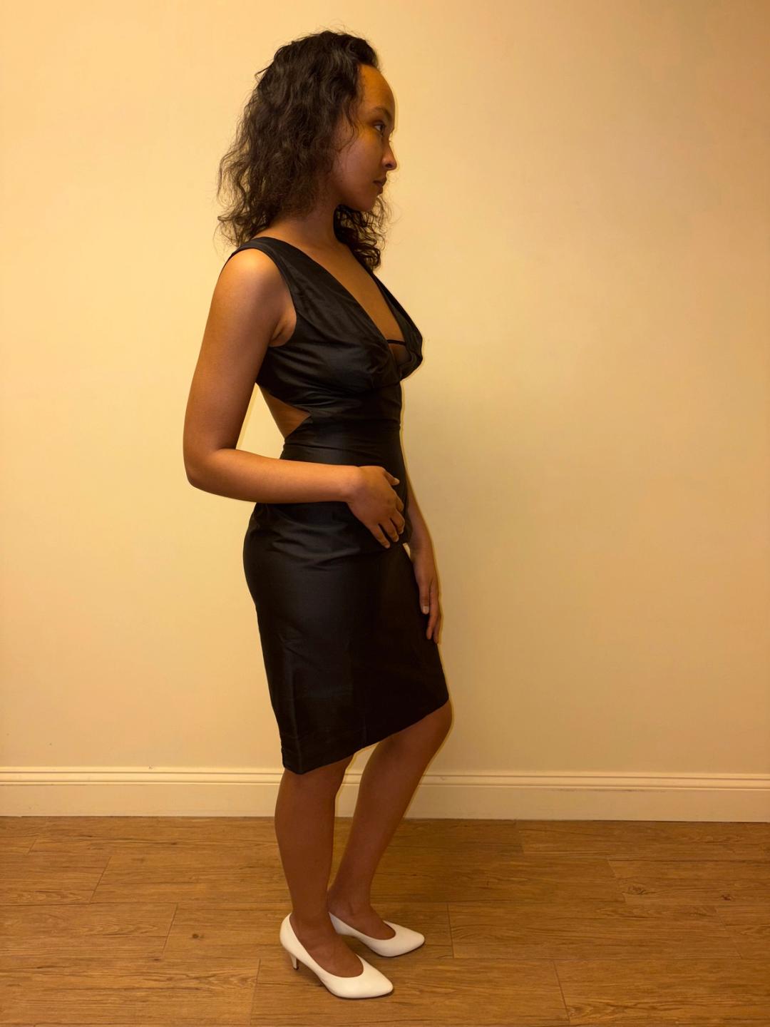 Early 2000s Costume National tailored raw silk sheath dress with back cutout and unique keyhole cutout in front.