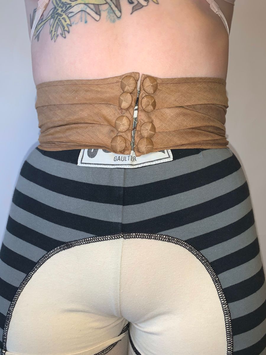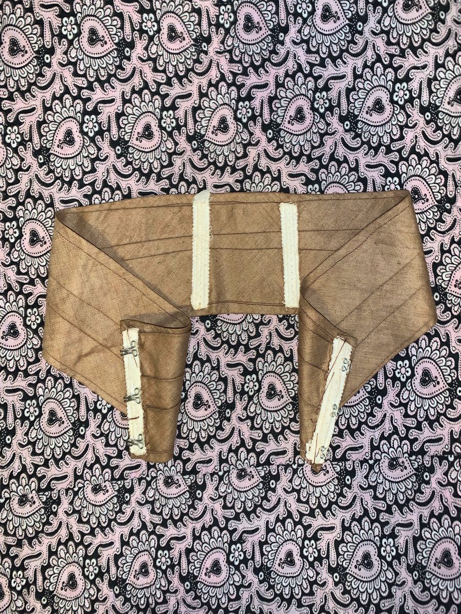 Gorgeous antique belt from the Edwardian period. The buttons on the front are all handmade and exquisite. There is boning on the interior and invisible clasps at the front. Was presumably originally attached to a gown, but it's a lovely accessory to add over a dress or garment of your own! The belt is in impeccable vintage condition.