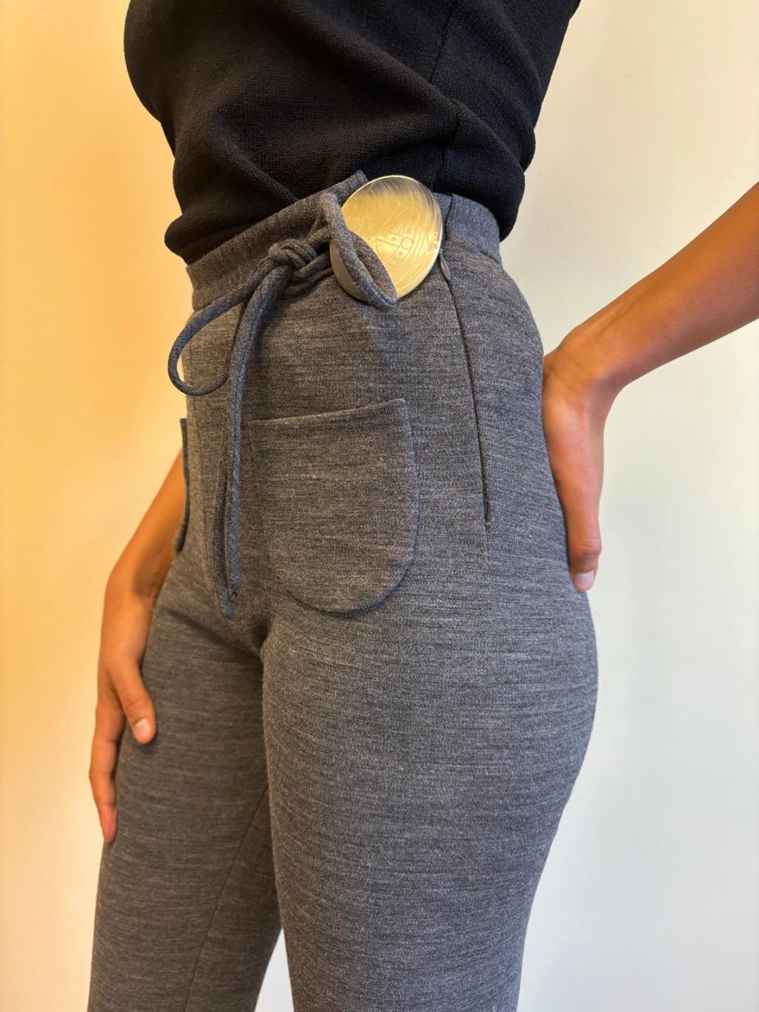 Rare capri length leggings by Vivienne Westwood from her Fall/Winter 1998 collection. The same pair were in the runway show (see included images). The leggings have small pockets and an oversized engraved orb button with a tie. They have a zipper closure.
