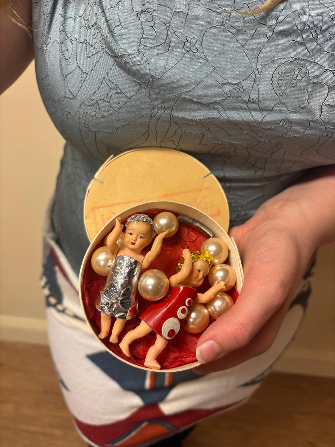 Extremely rare one-of-a-kind baby doll bracelet by Russian jewelry designer Irina Volkonskii who designed for Castelbajac. Both of the babies have fabulous rhinestone hairstyles and dresses. Signed. One size fits all.