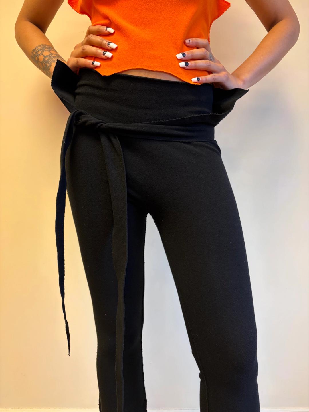 Vintage Issey Miyake APOC black pants. The pants have an adjustable sash which can be tied or left hanging. They're very stretchy and fairly free-size.