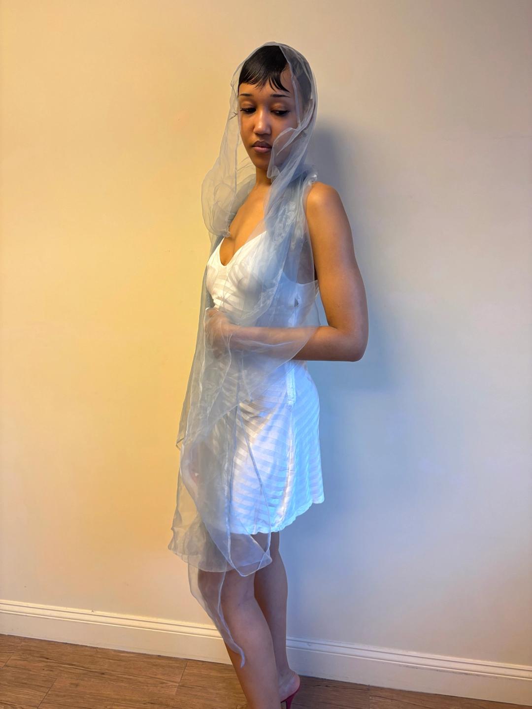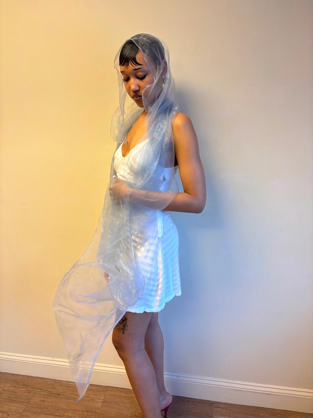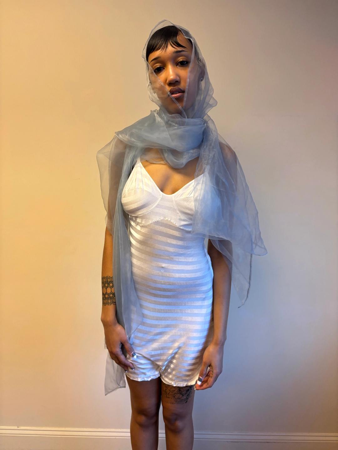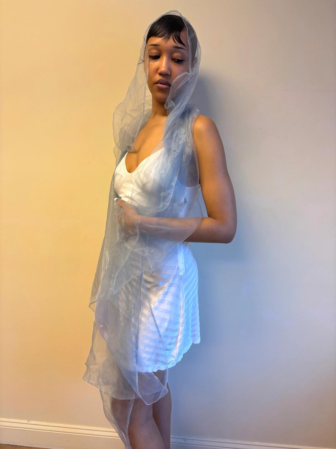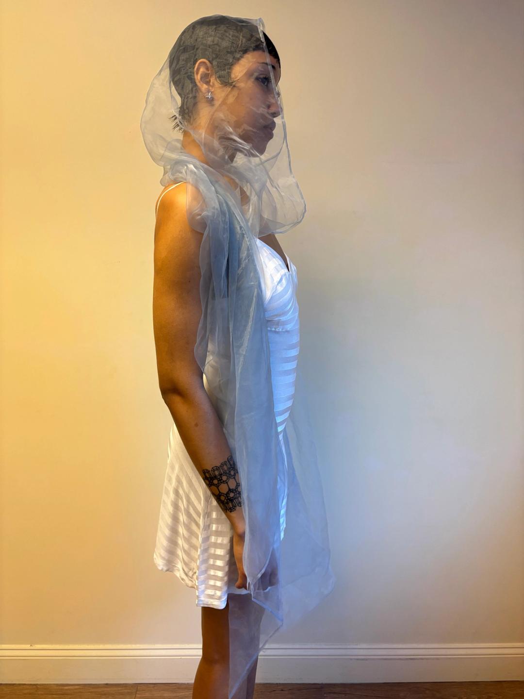 Issey Miyake glossy sheer blue/silver shawl. Can be worn and styled many different ways. Pristine condition, open size.