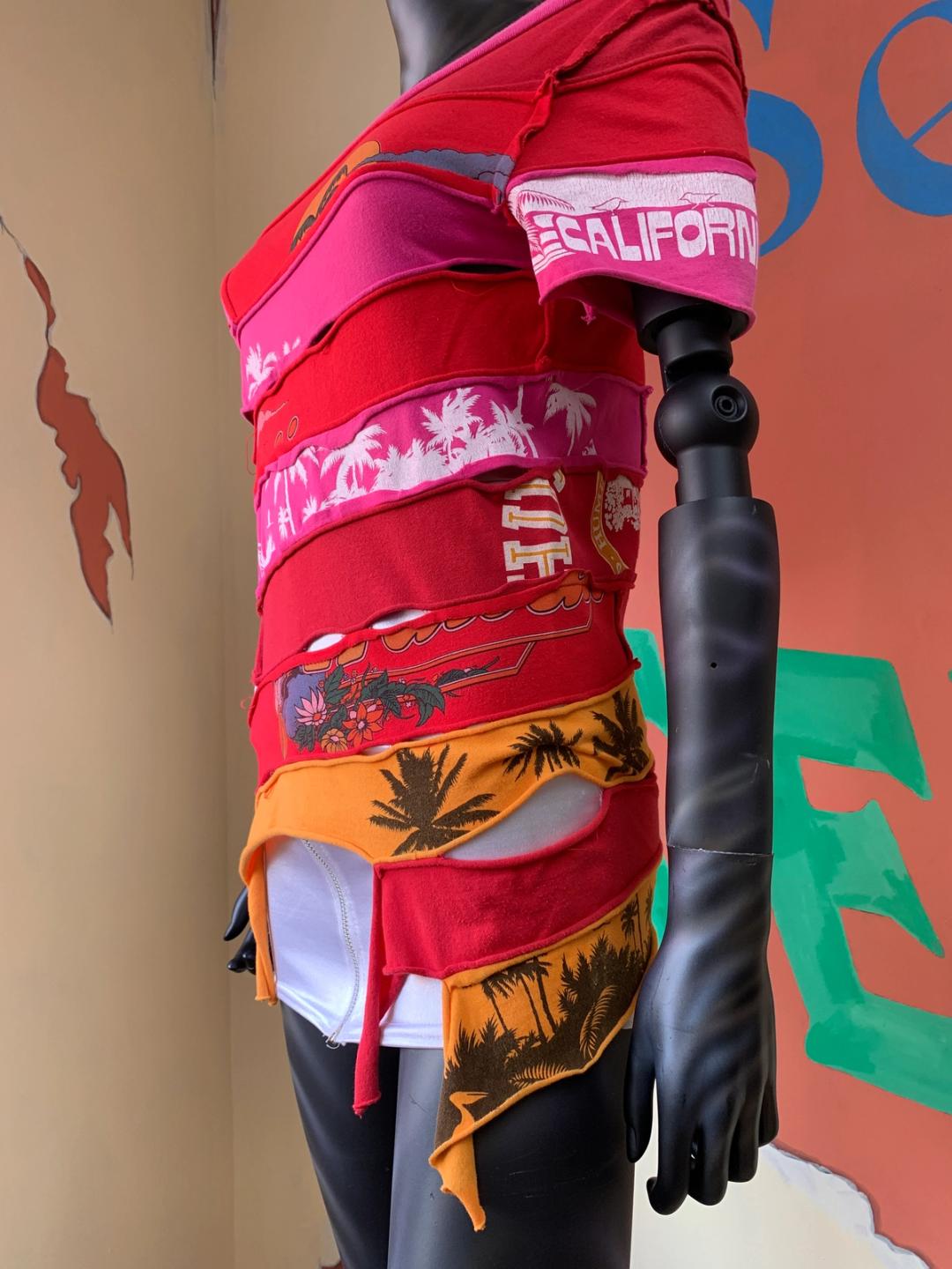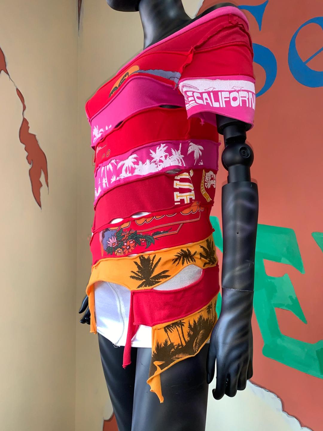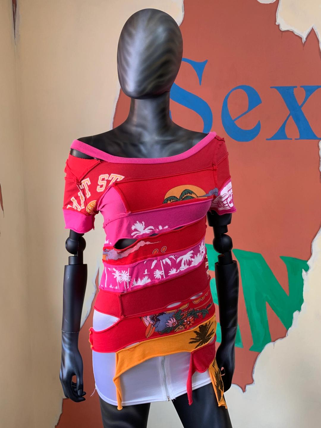 Rare shirt by Keita Maruyama from his SS 2002 collection. The shirt is made of repurposed shirts and has a sculptural fitted silhouette.
