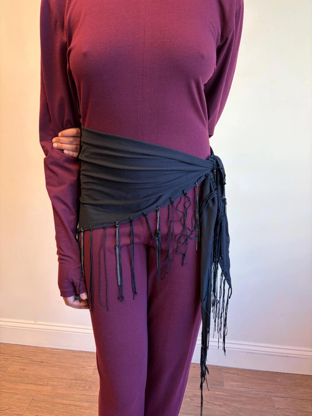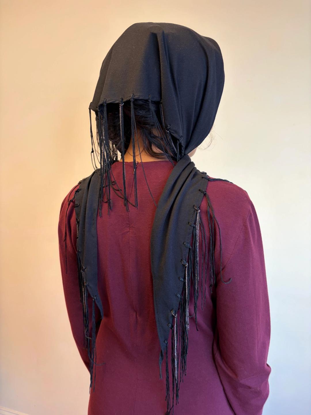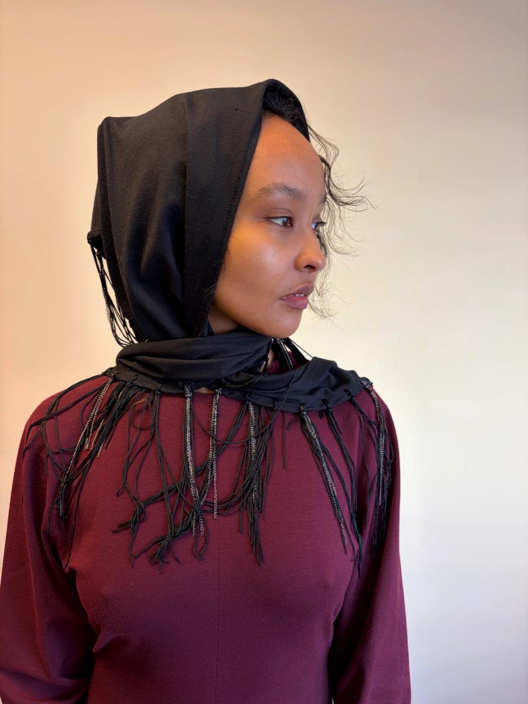 Krizia cotton scarf with fringe and chain detail. Can be worn in a variety of ways!