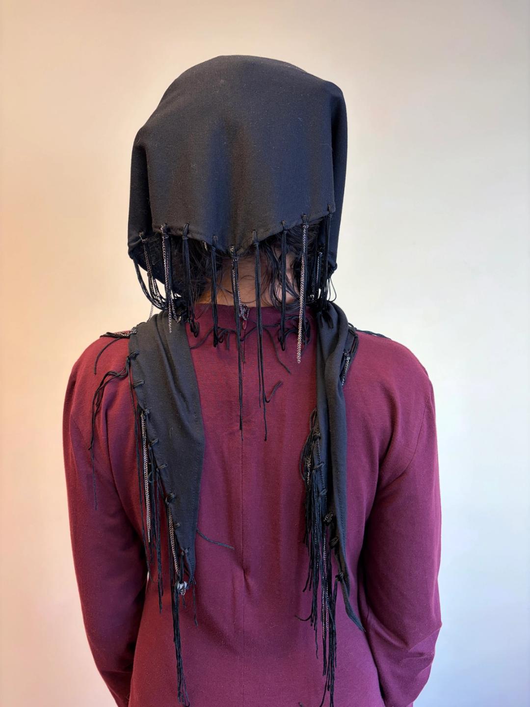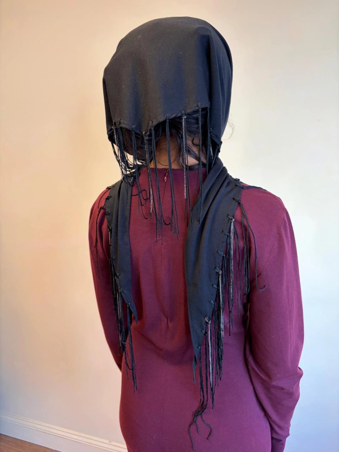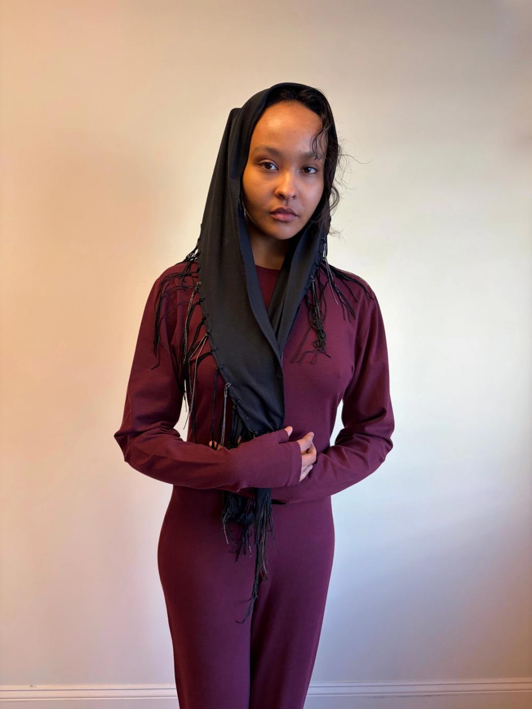 Krizia cotton scarf with fringe and chain detail. Can be worn in a variety of ways!