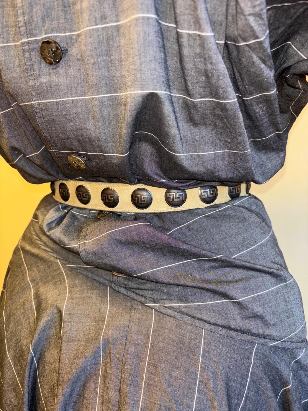 Late 70s Claude Montana Greek Key Studded Belt