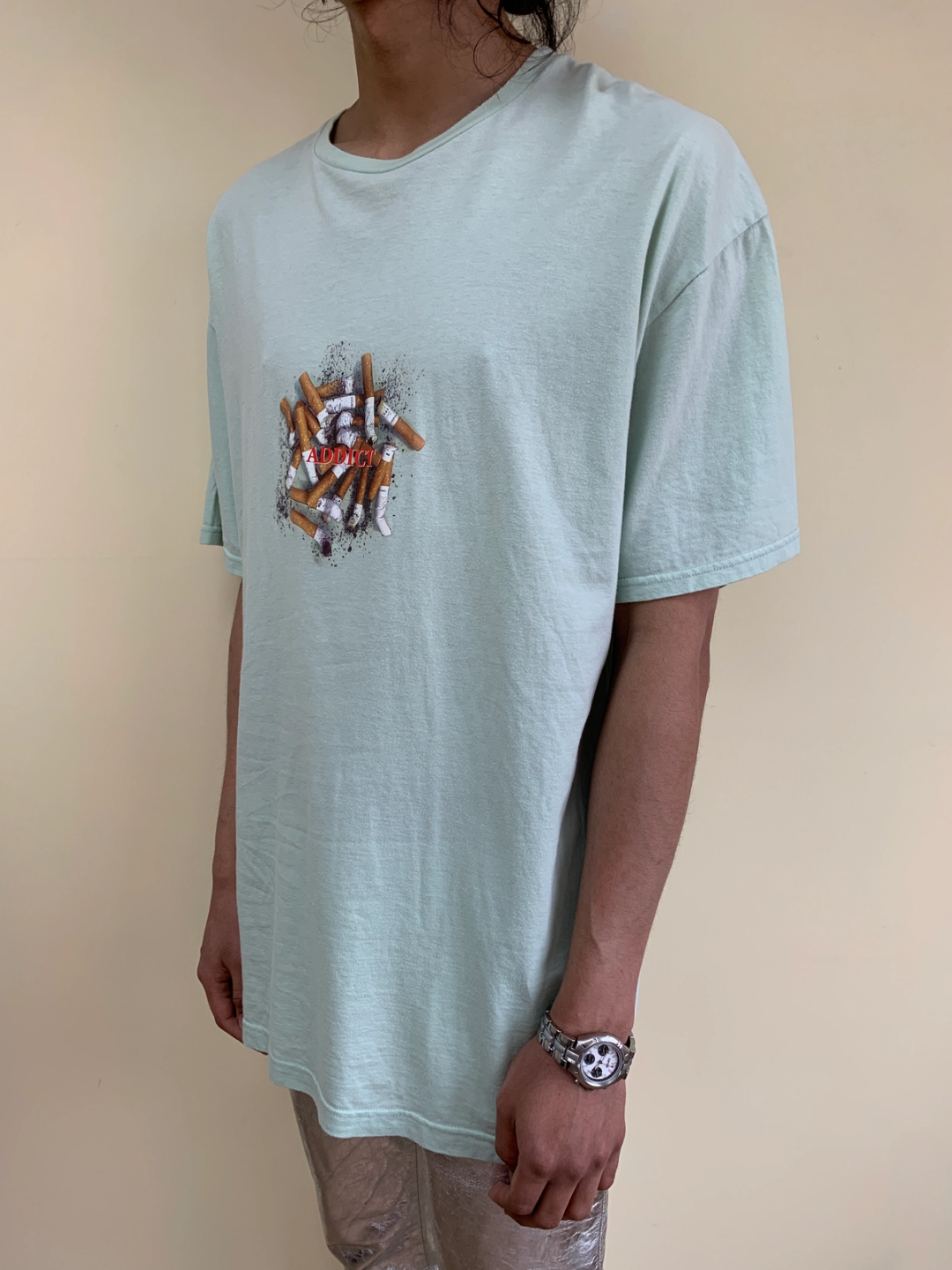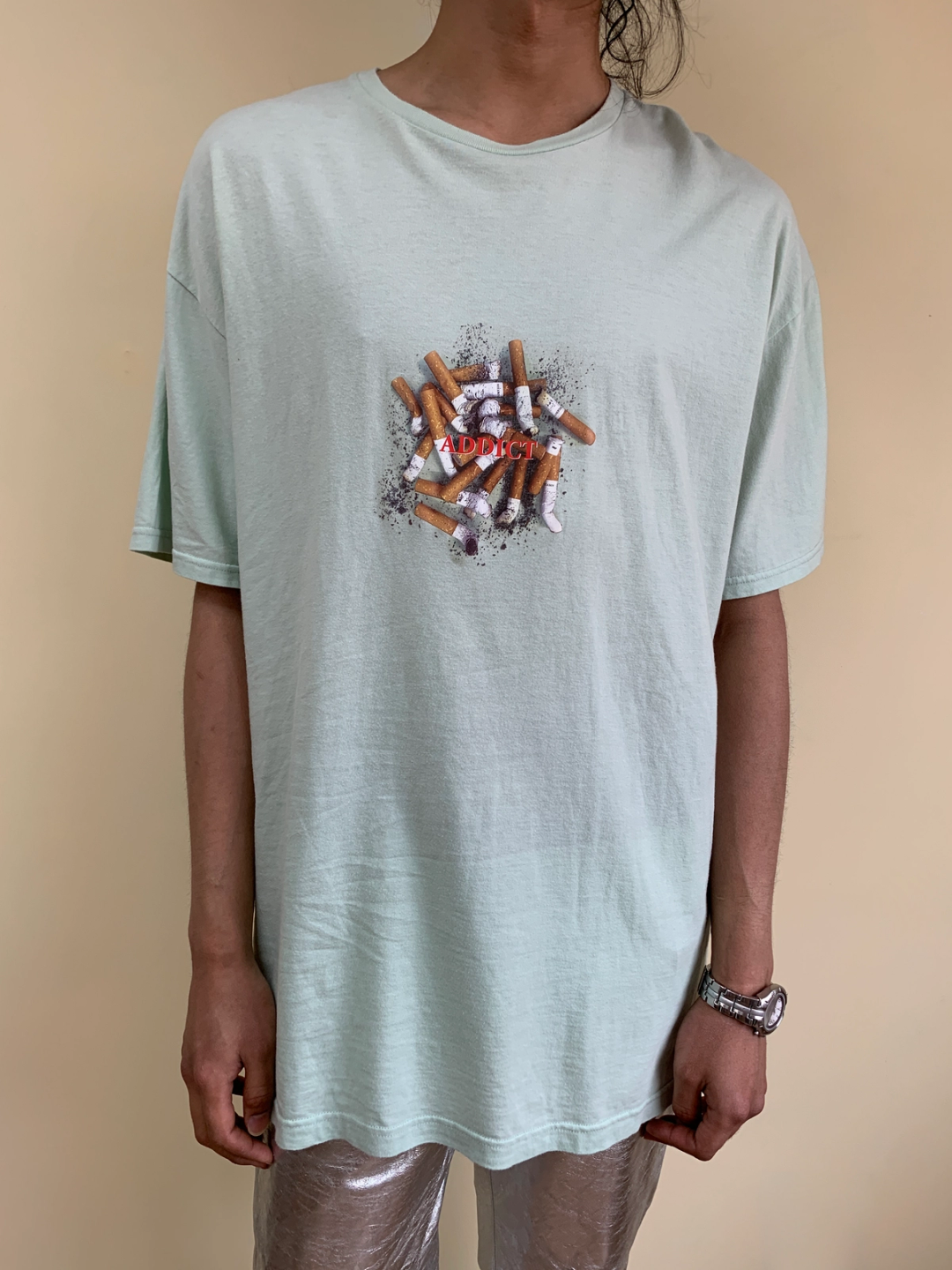 Milkboy "Addict" with cigarette ashtray graphic t-shirt. More oversized fit. Unisex.