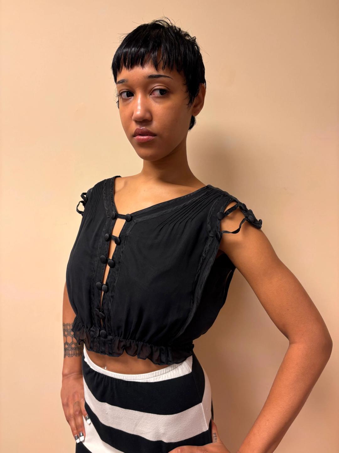 Norma Kamali OMO Fall 1993 Edwardian- Inspired Silk Top