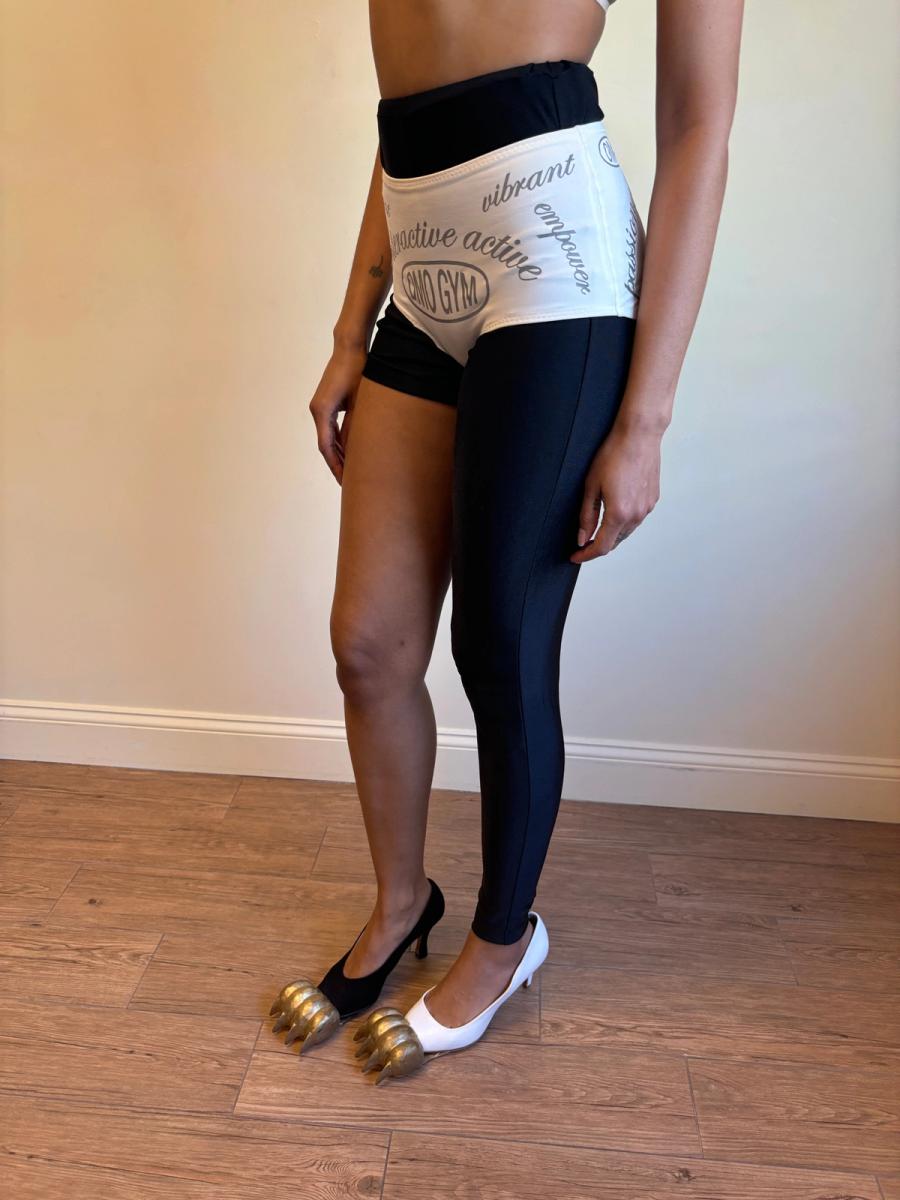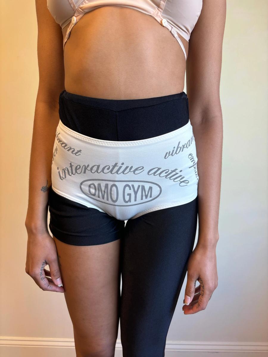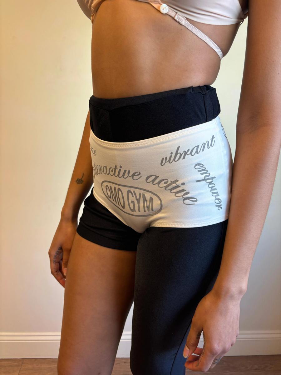 Norma Kamali 2000s OMO Gym shorts with techno print. The print is made with 3m so the shorts are reflective. In excellent unworn condition!