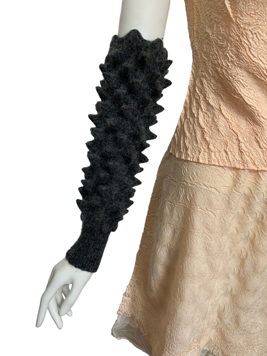 Rare knitted spikey arm warmers by Nozomi Ishiguro. Extremely intricate and uniquely made item. The arm warmers are tight on the wrist and are therefore held in place quite well. They're quite stretchy and one size fits most.
