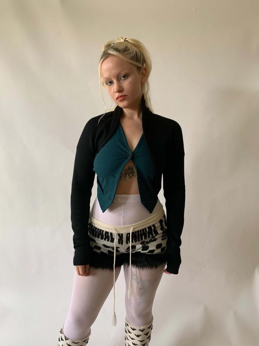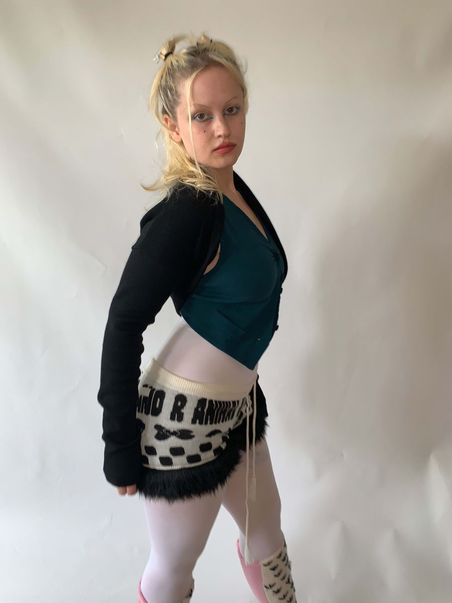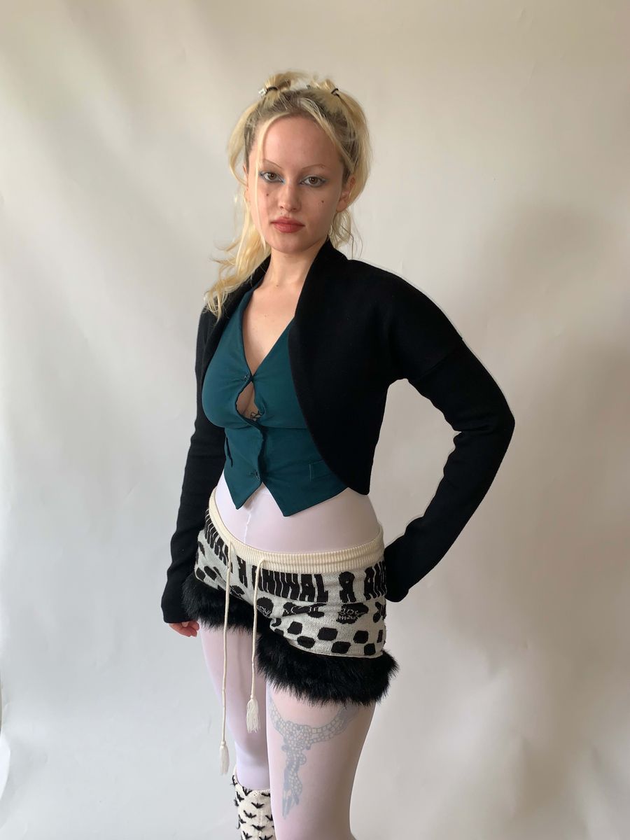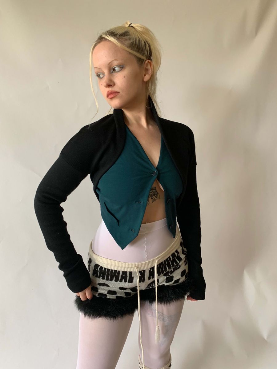 Vintage Romeo Gigli black wool ballerina style shrug. Thick and sumptuous stretch wool, fitted extra long and scrunching sleeves. Beautiful, wearable item in pristine condition from a master of cut! Size is not marked but it is very stretchy and not size specific, could fit many sizes.