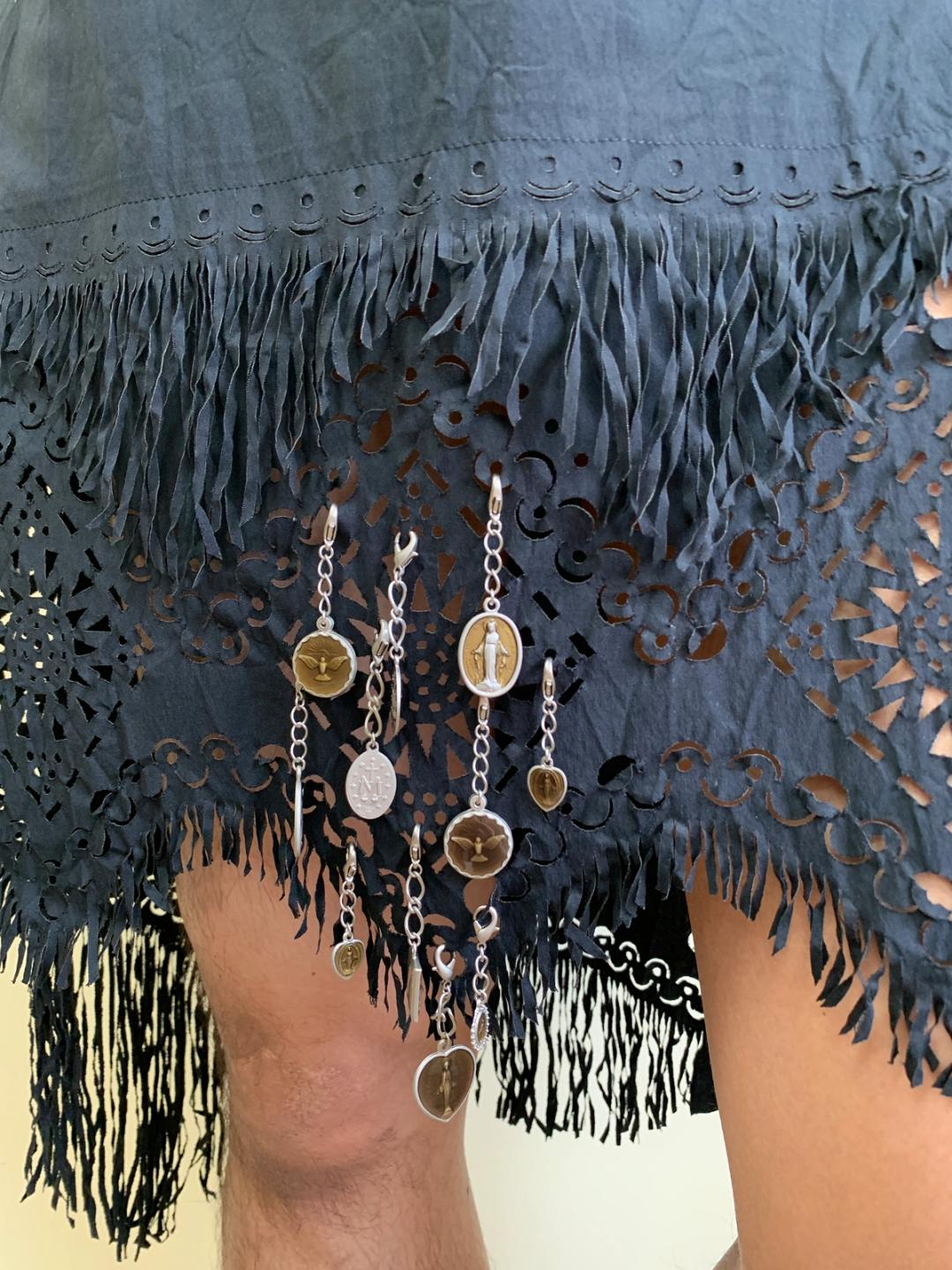 Rare skirt by Jean-Paul Gaultier from the SS 2003 runway. It's made of laser cut stretch cotton with rosary charms which can be detached and arranged as you please.