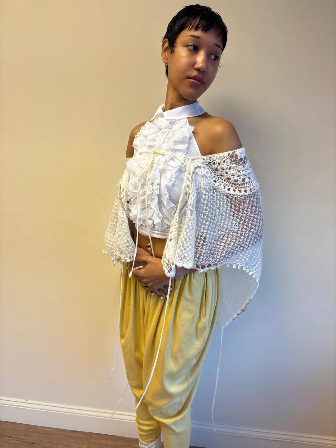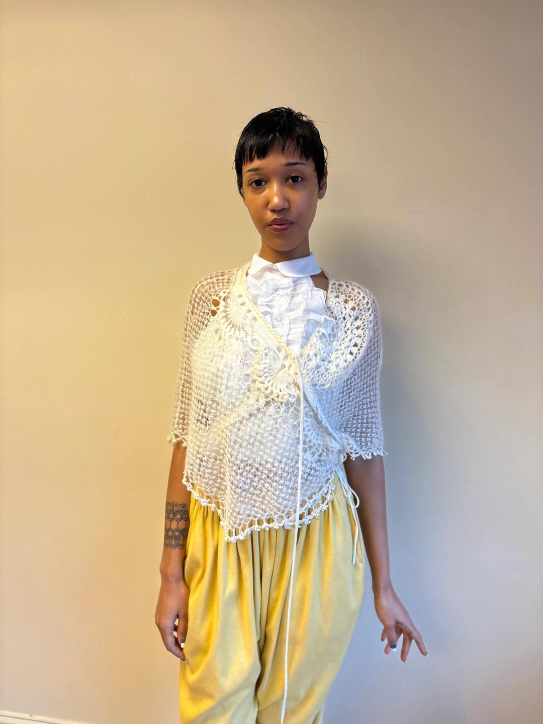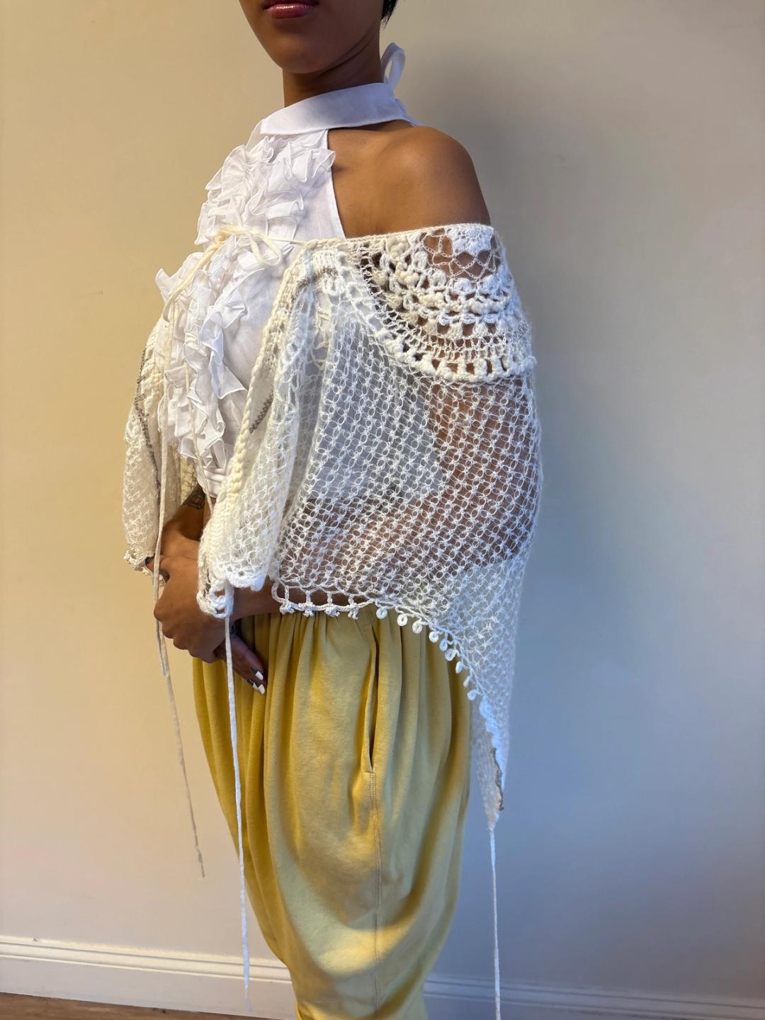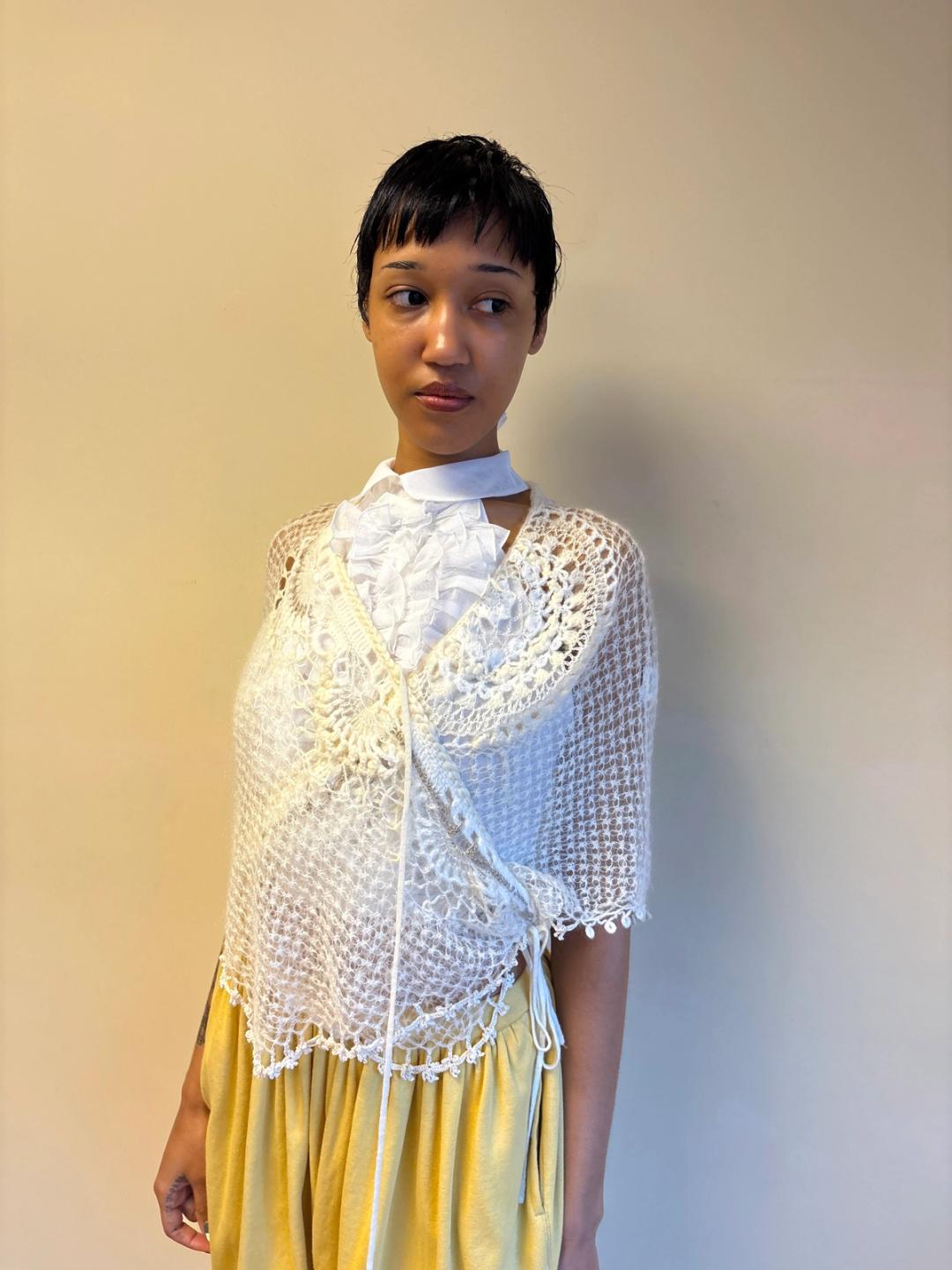 Sunao Kuwahara Lace Mohair Crocheted Wrap Shawl