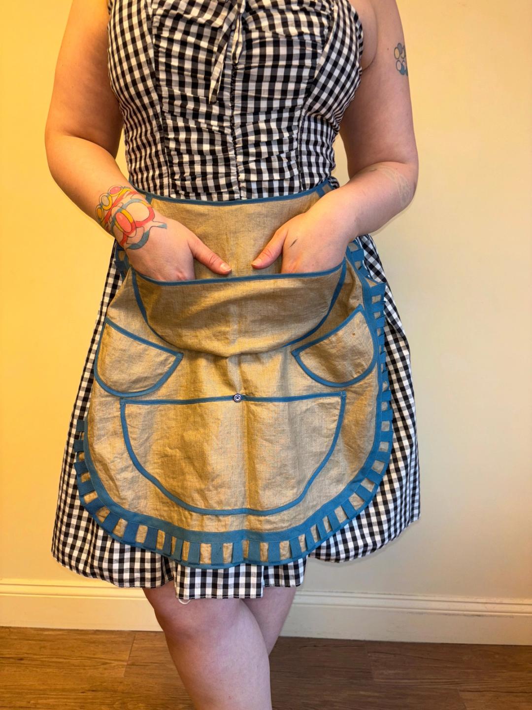 Victorian Natural Linen Apron with Blue Tape Detailing