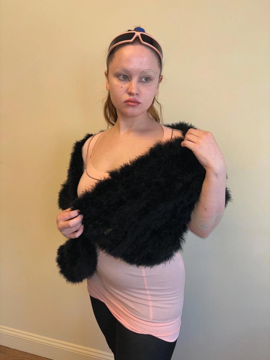 Gorgeous vintage black marabou stole by Chantal Thomass. The stole is in excellent condition and has a unique fabrication. It can be worn in a variety of ways!