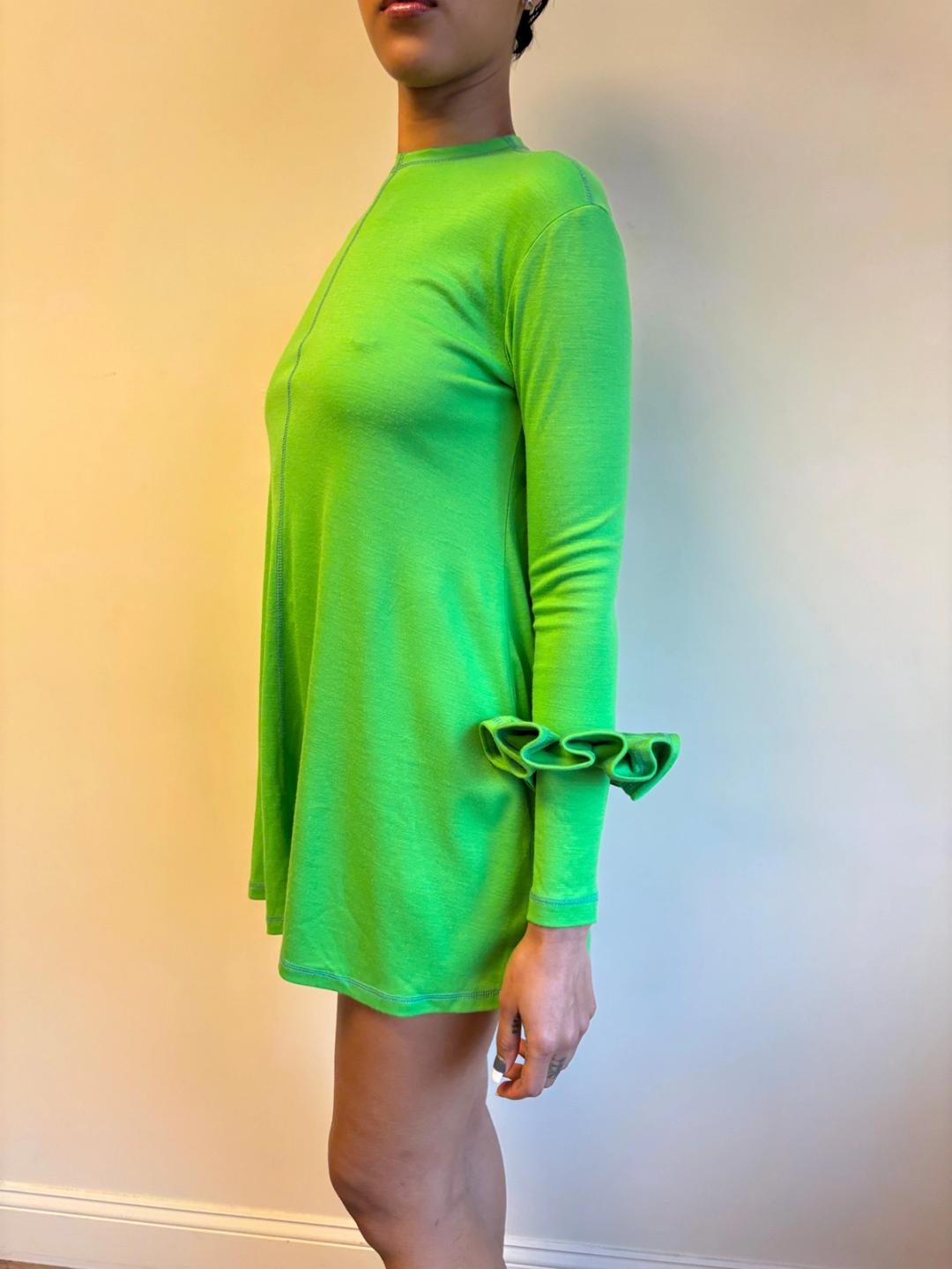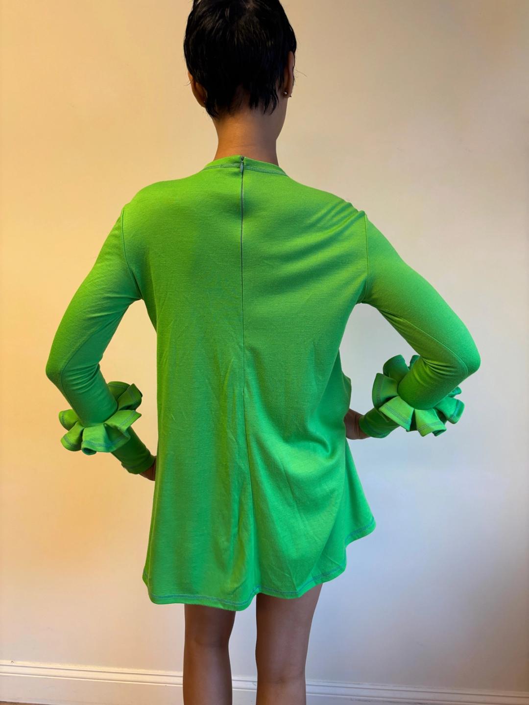 Unusual Chantal Thomass vibrant green dress with flouncy medieval like sleeves. In excellent vintage condition!