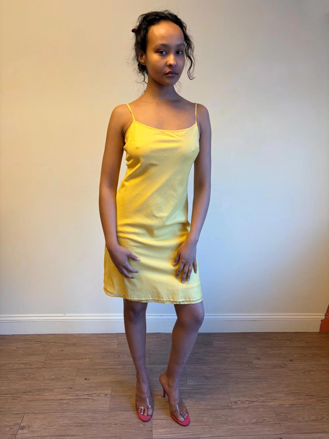 Vintage Norma Kamali Yellow Voile Bias Slip
